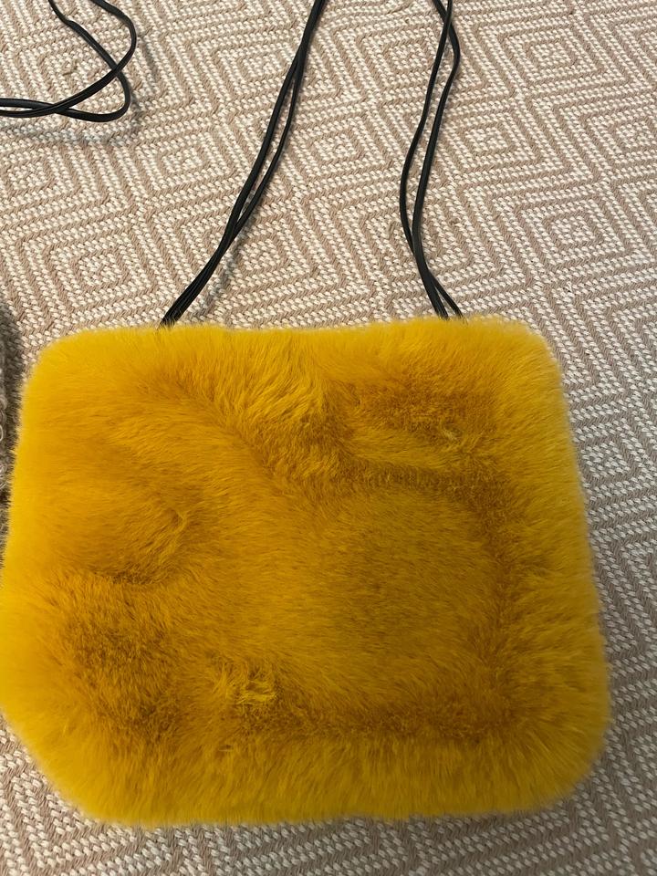 Яркая, меховая сумочка насыщенного желтого цвета на длинном ремешке с застежкой-клепкой. Артикул: 350522