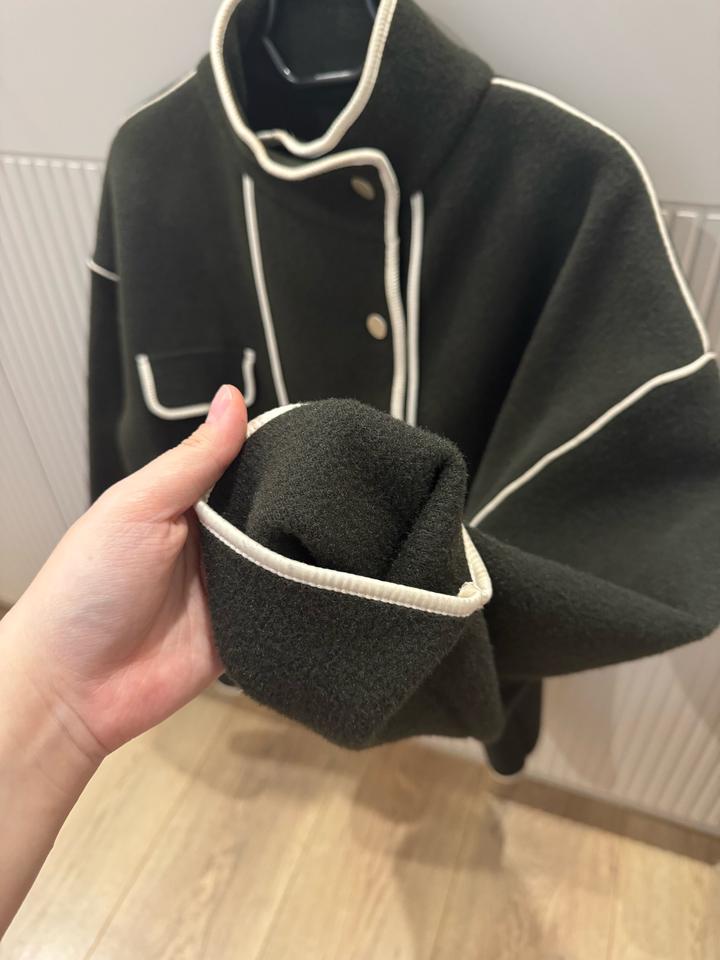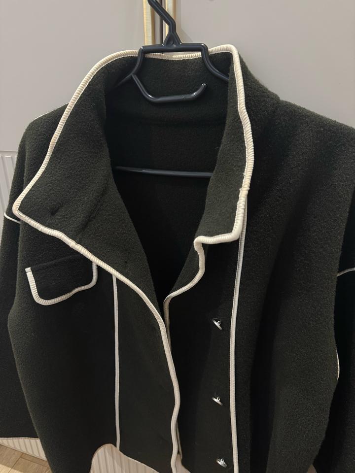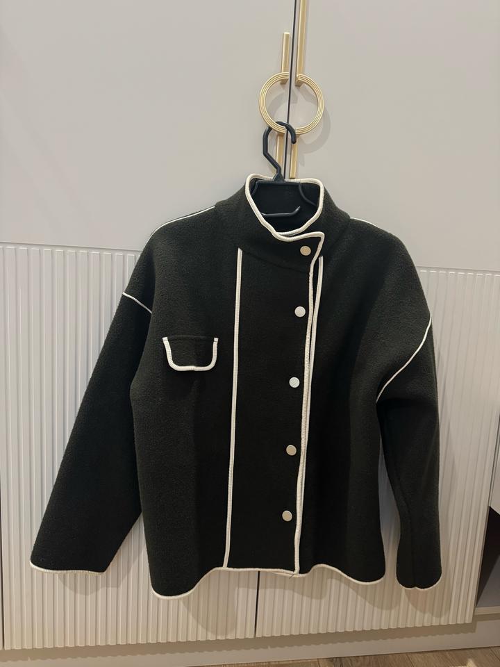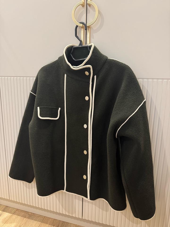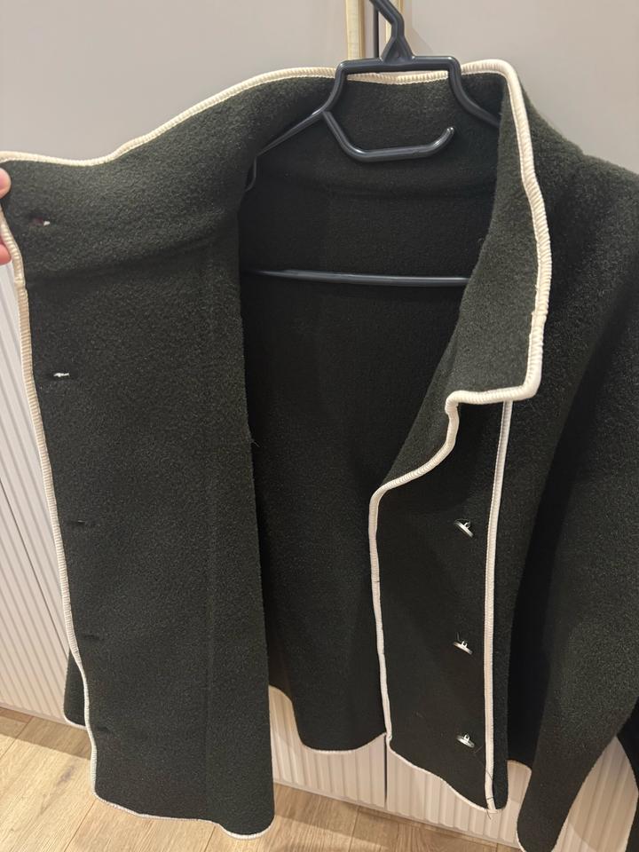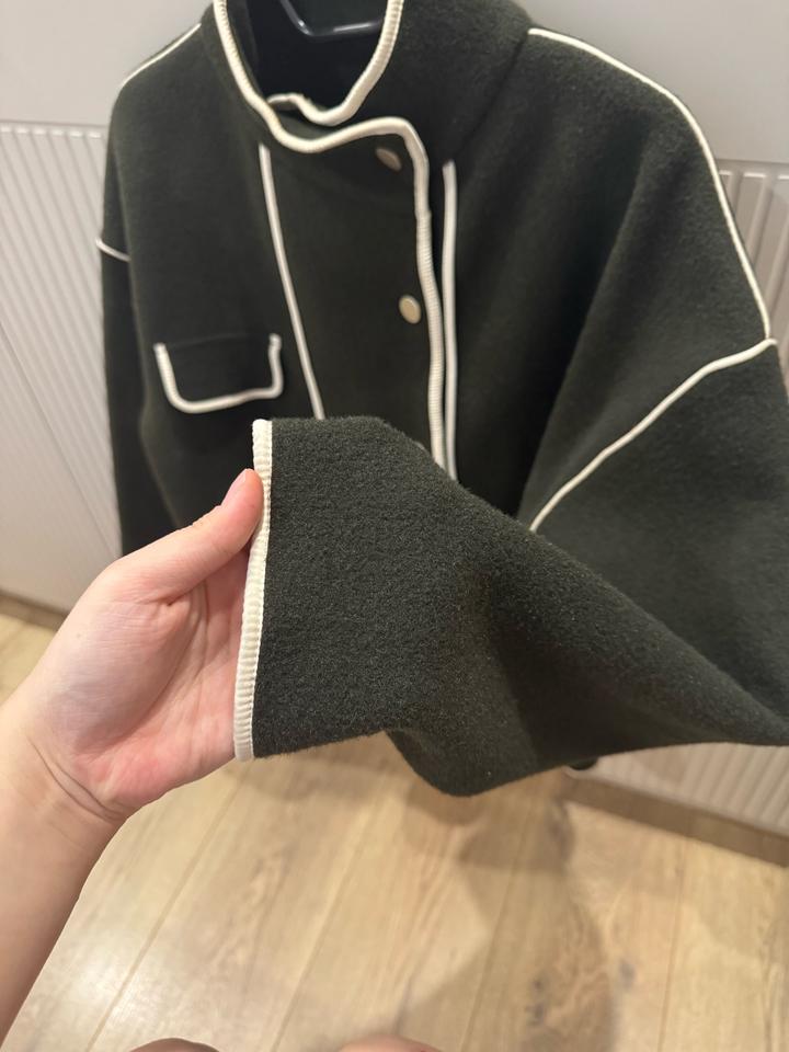 Шерстяное теплое пальто . Подойдет для прохладной осени-весны. Прошу обратить внимание на цвет : хакки/отдаёт темно зеленым. Имеются белые вставки . Воротник стойки , при желании можно спустить . Подойдет на размер S/M Артикул: 350725