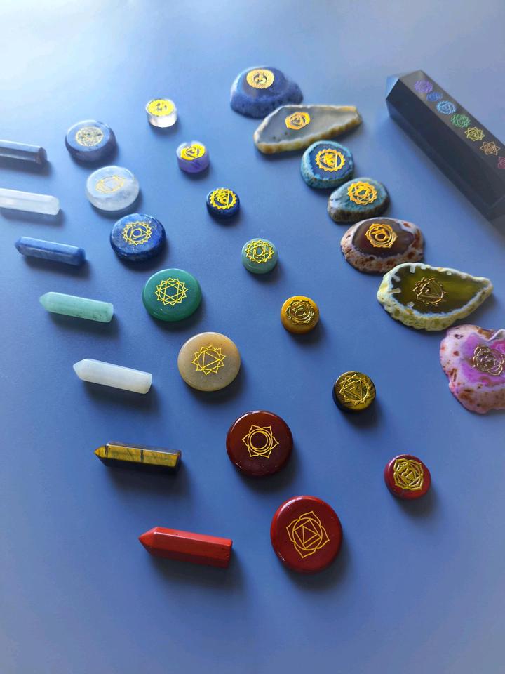 Нереальной красоты набор натуральных камней В наборе: Круглые камни medium чакры Камни столбики чакры Чакры агаты Круглые камни мини чакры В случае покупки набора, в подарок подарю вам мощный кристалл черного обсидиана с гравировкой чакр🎁со второго фото Подарок к заказу от 2-х вещей🎁 10% скидка при покупке от 5 вещей Артикул: 351823