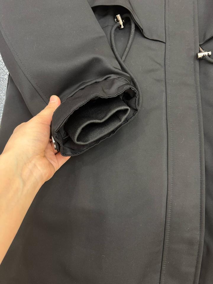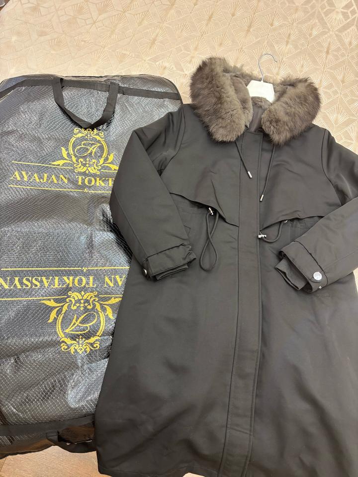 Парка черного цвета, с капюшоном, изнутри мех, с кармашками, талию можно регулировать, на размер 42-46, на рост 165 по колено Артикул: 353635