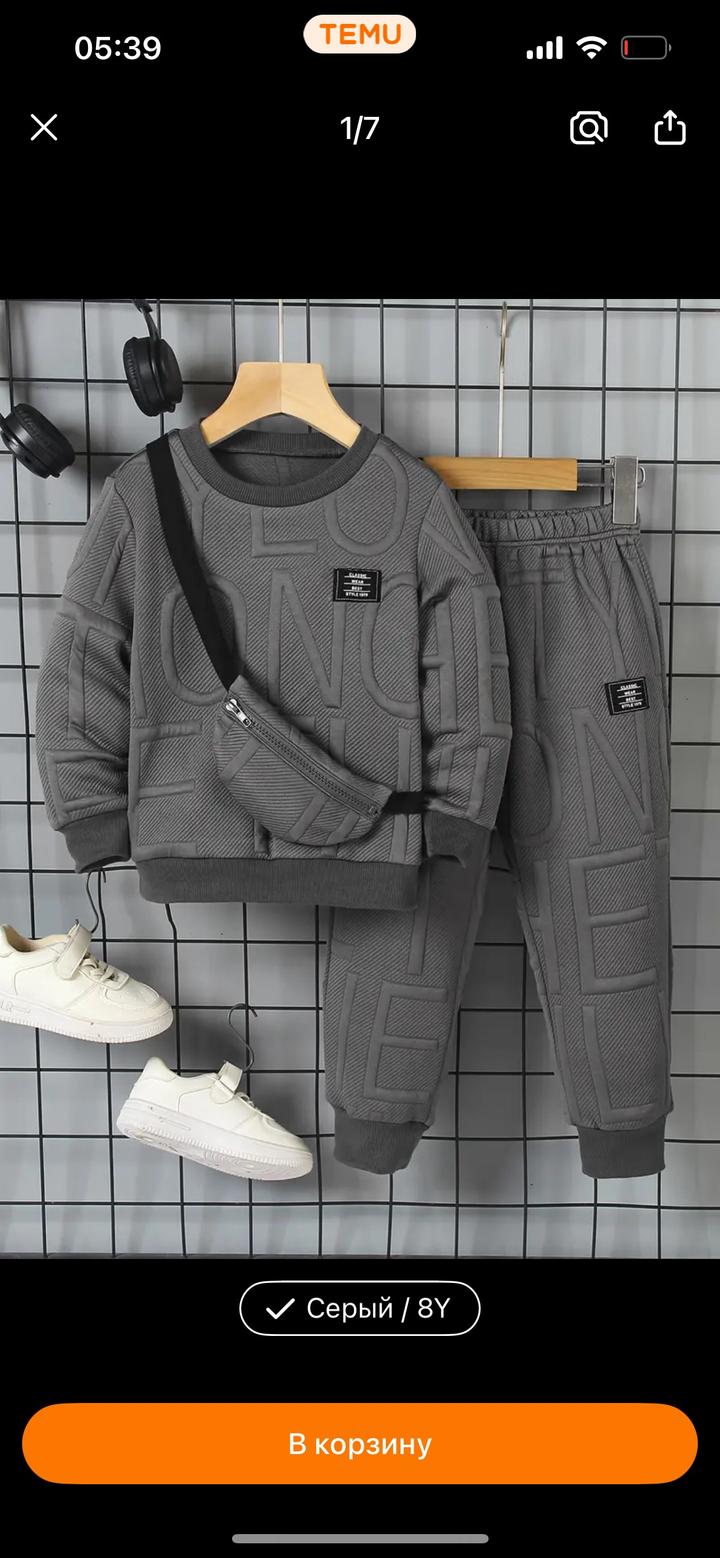 Стильный костюм-двойка на мальчика 7-8 лет Рост 130 В комплекте с мини-сумкой Артикул: 354311
