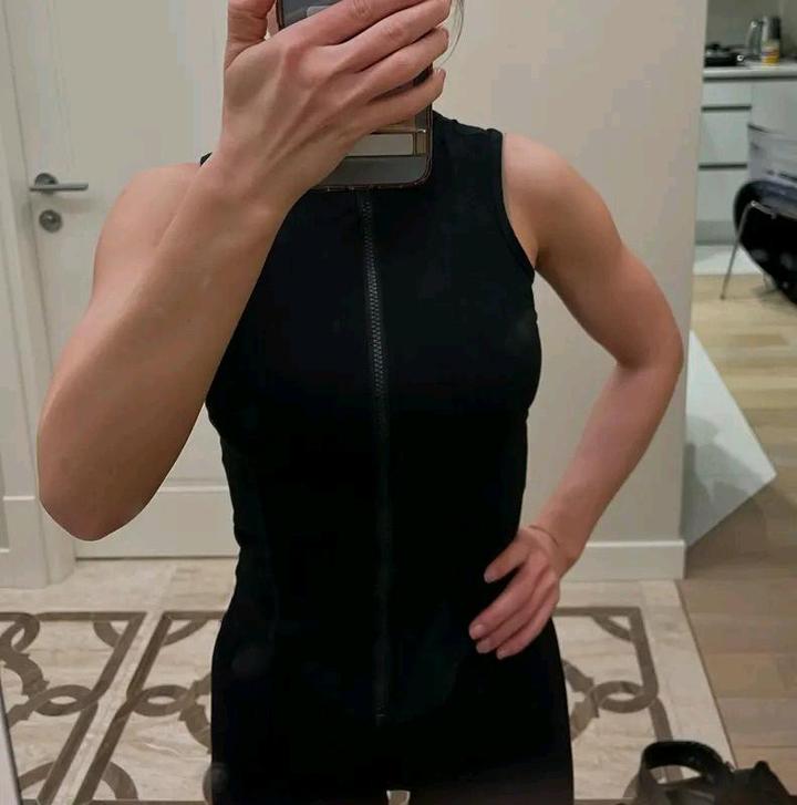 Надевала пару раз на тренировку. Из плюсов: Крепко держит грудь (по желанию, можно носить без белья) Из минусов: при выполнении упражнений, где нужно опираться передней частью корпуса, молния может давить на живот. Также при верхней тяге или подтягиваниях топ поднимается вверх, так что носить его заправленным в штаны или шорты будет проблематично. Несмотря на минусы, классная вещь, может перезакажу на размер больше. Обхват талии: 65-70 Обхват груди: 85-90 Артикул: 354950