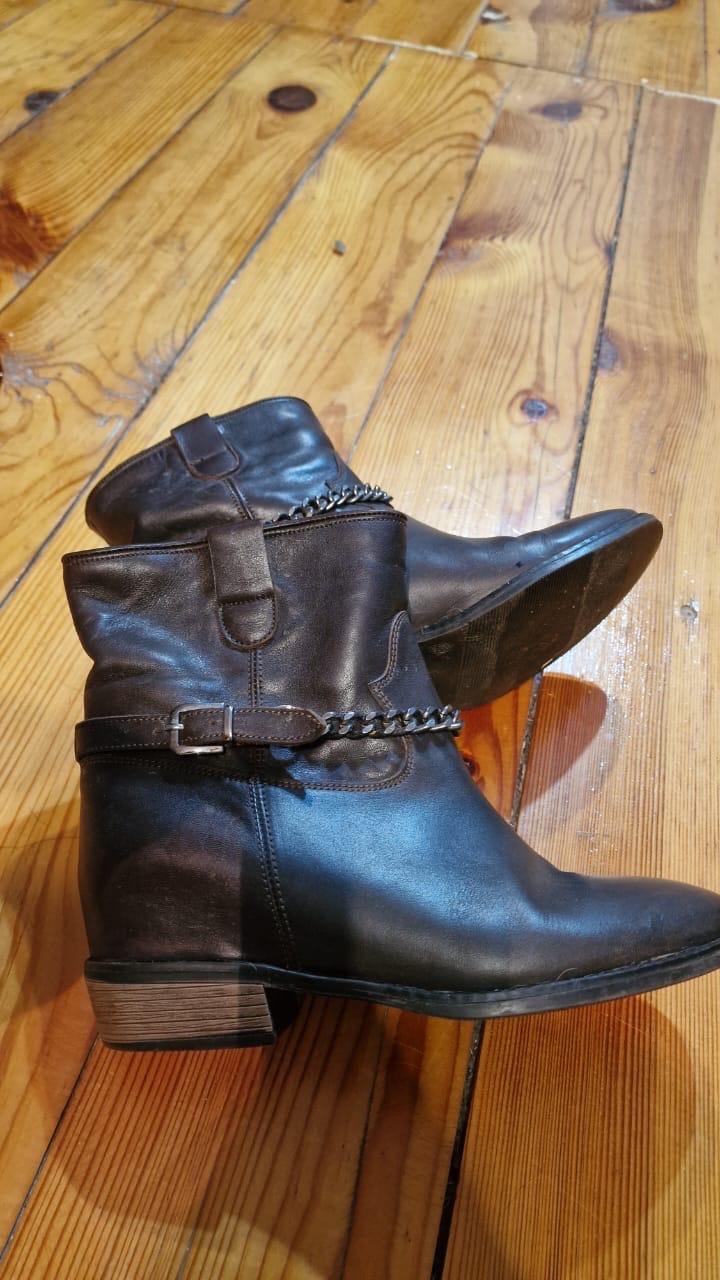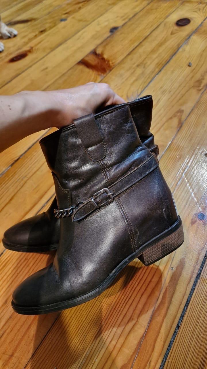 Ботинки, натуральная кожа. Турция, 38р. Состояние нормальное. Снаружи чуть потерто, внутри идеальные. Цвет коричнево-серый Артикул: 355103