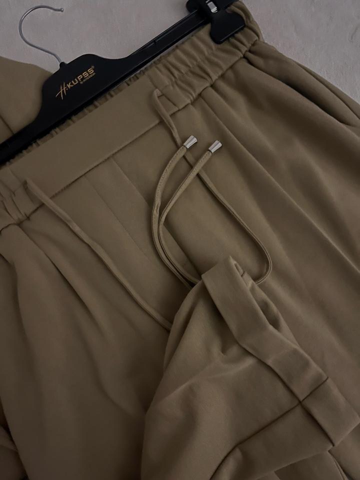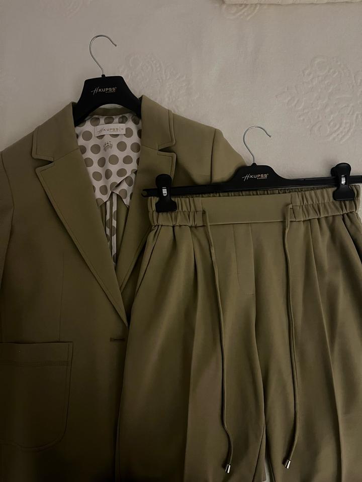 Брючный костюм в цвете хаки. Новое , этикетка была оторвана, но не носила ни разу. Размер 38. Идеально подойдет для S , M . Покупала для приданого , не успела доносить до беременности. Стала мала. Артикул: 355136
