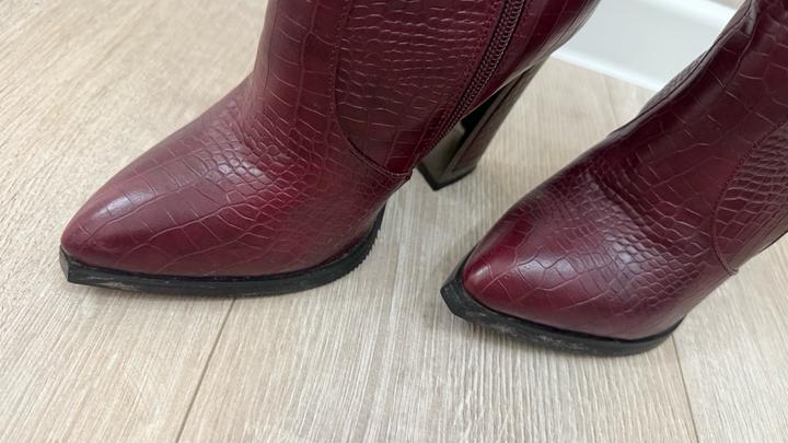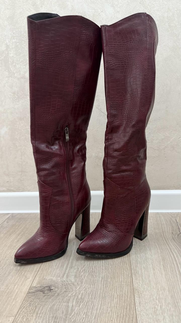 Кожаные зимние сапоги ,оттенка Бордо .Одели всего 1 раз на мероприятие . Артикул: 355644