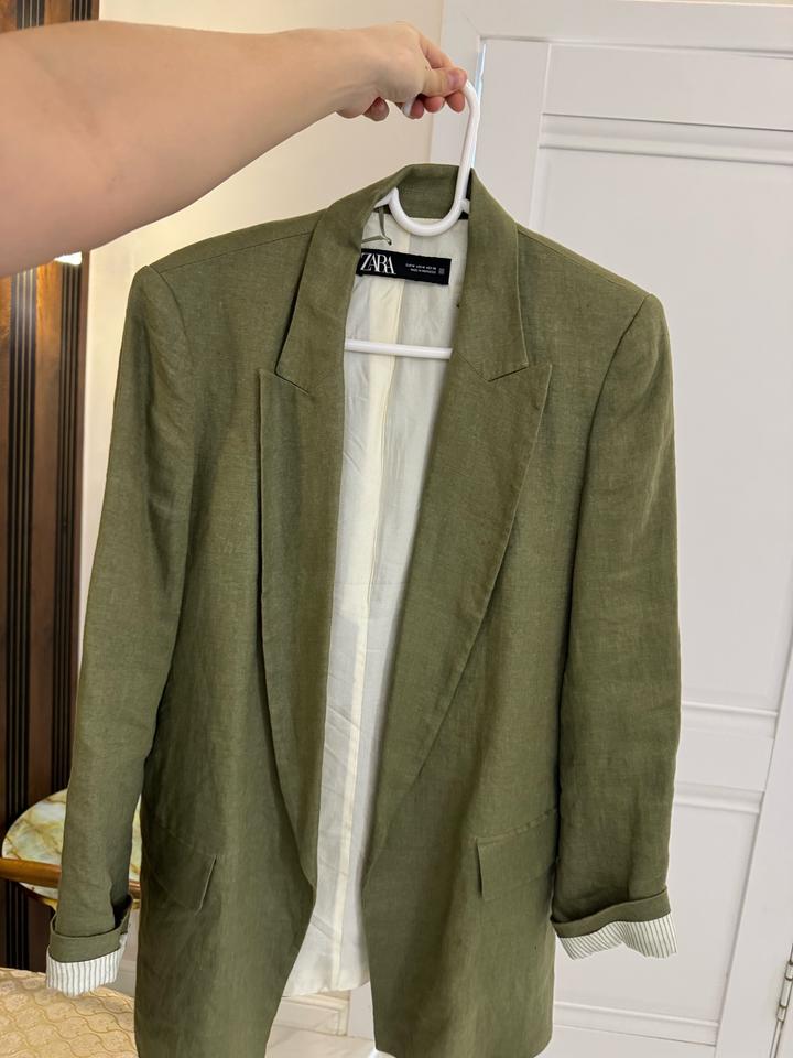 Лен пиджак от Zara цвет: фисташковый Артикул: 357063