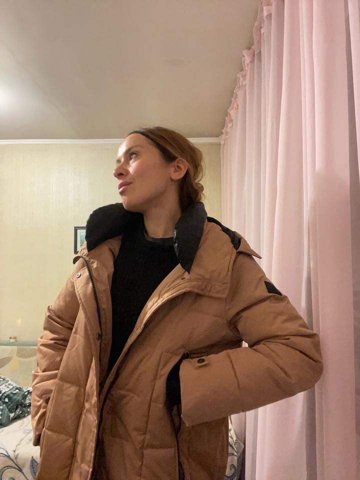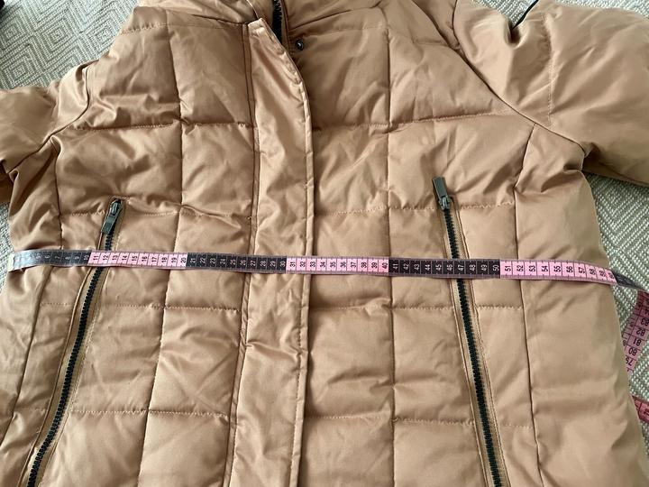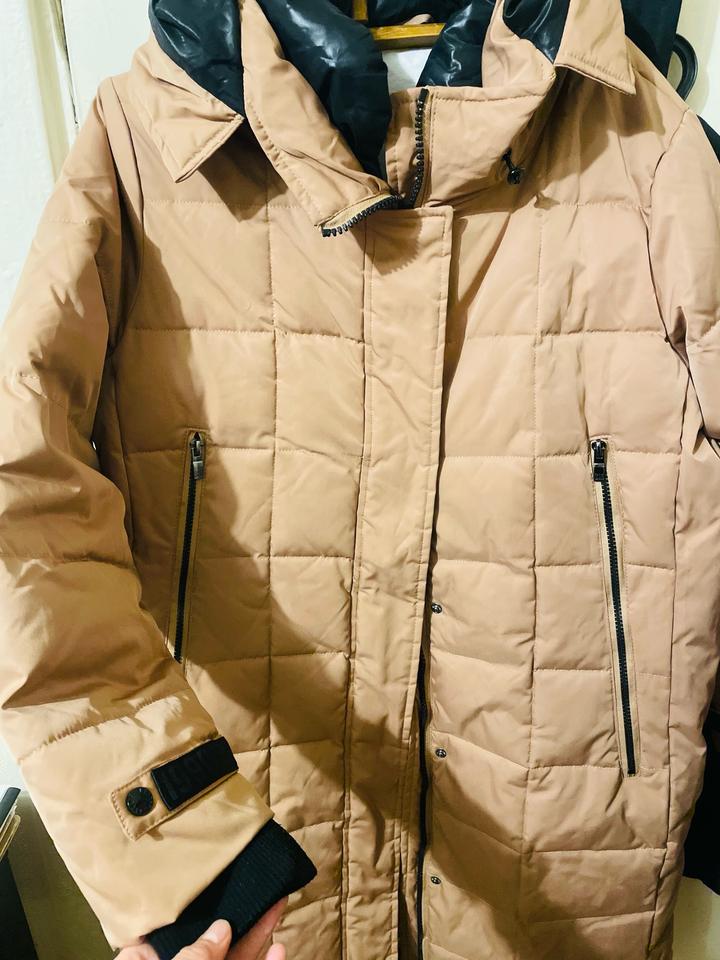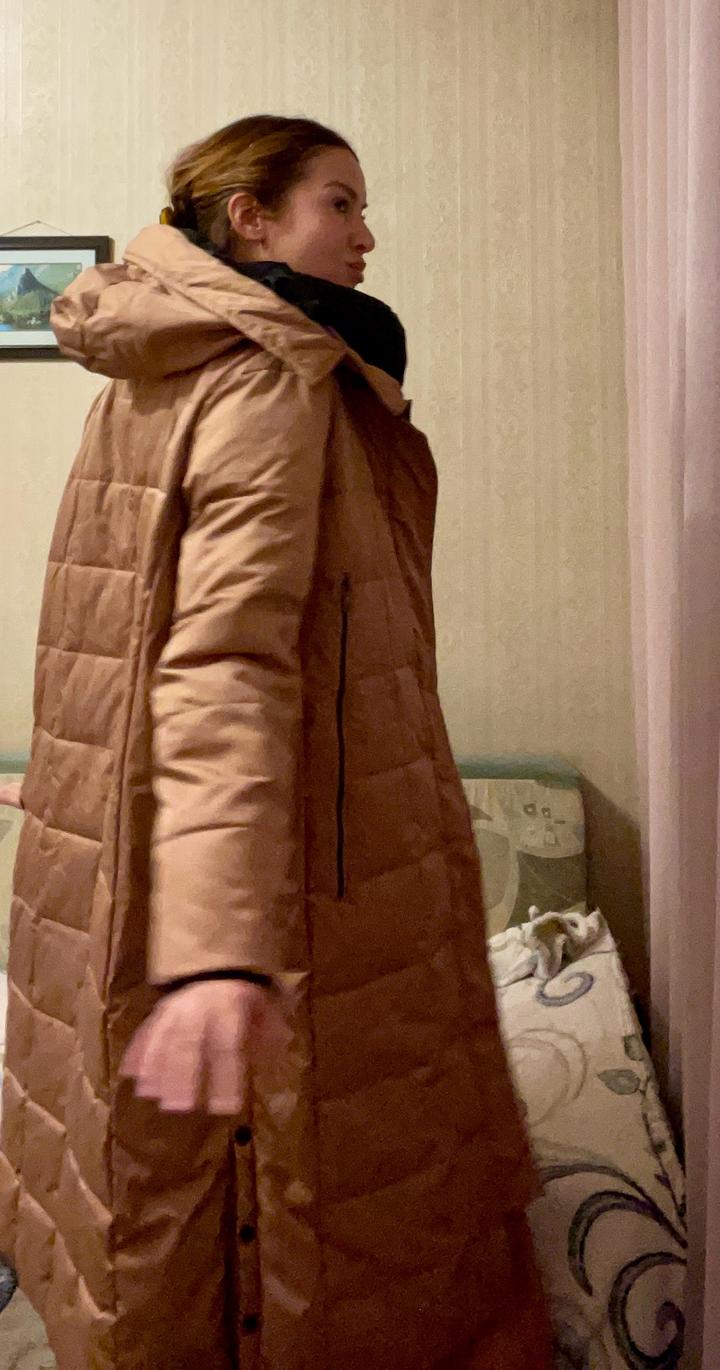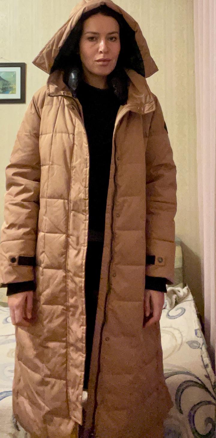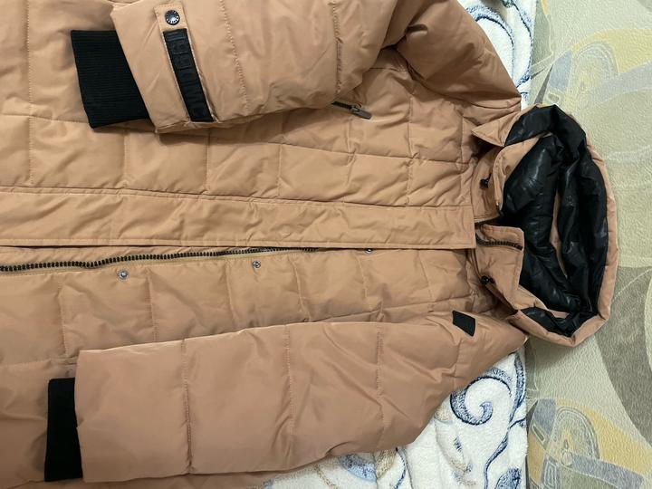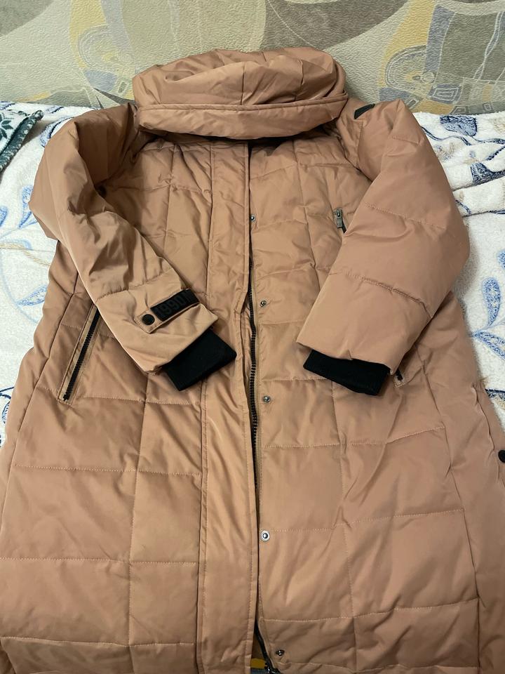 Женский пуховик ниже колен, размер 48-50, L-XL. Прямого кроя. Рукава на манжетах. Плотный. В хорошем состоянии. Артикул: 357376