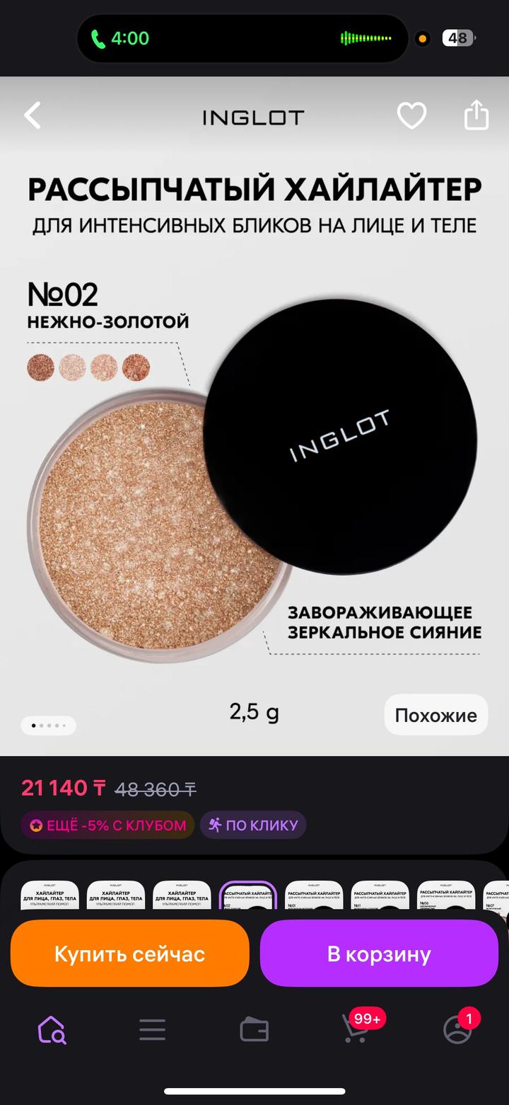 Inglot рассыпчатый хайлайтер, нежно золотистый оттенок полный объем использован 1 раз всего Артикул: 357521