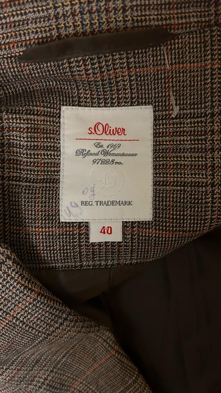 Классический пиджак Бренд: s.Oliver (Est. 1969, Refined Womenswear). Это известный немецкий бренд, специализирующийся на качественной повседневной и деловой одежде Размер 40,подойдет на S и М Ткань и цвет: Главная особенность – это ткань. Это клетка "Принц Уэльский" (Prince of Wales check) выполненная в коричнево-бежевых/серо-коричневых тонах с тонкими вкраплениями других цветов. Надевала только 1 раз. Этикетка была обрезана, точный состав ткани неизвестен Артикул: 358728