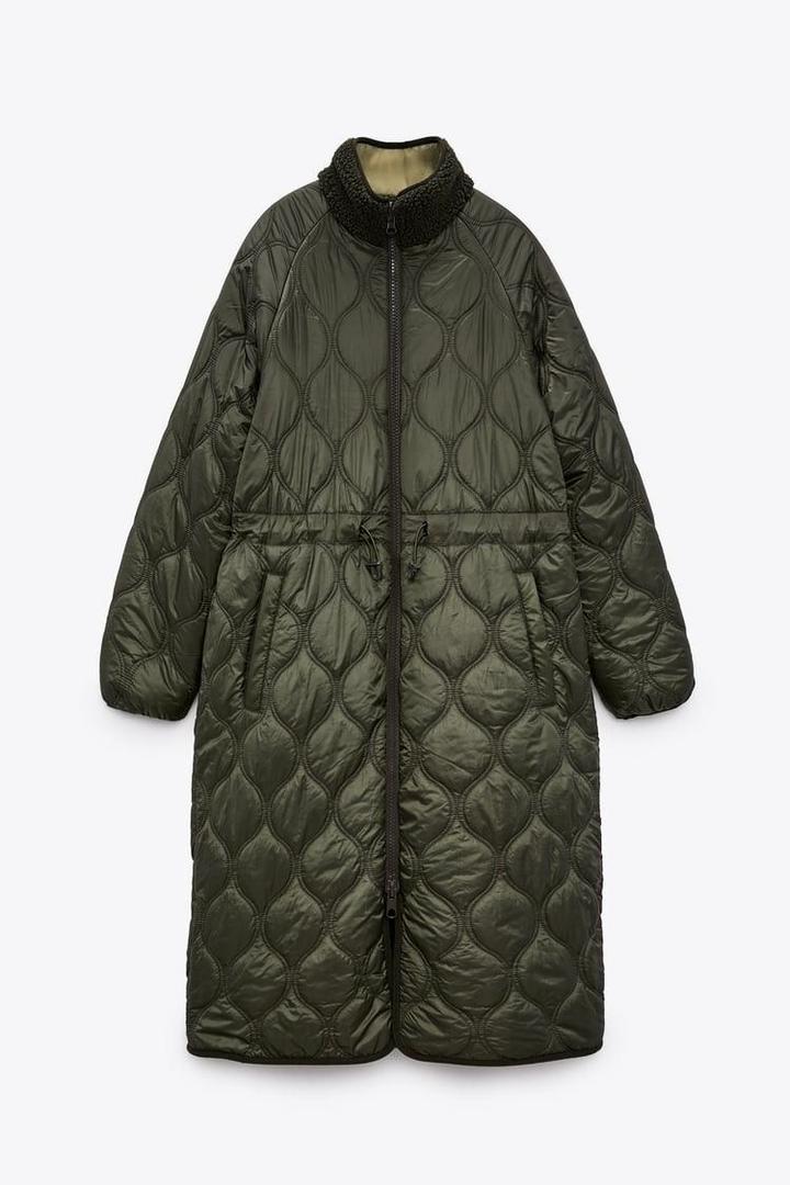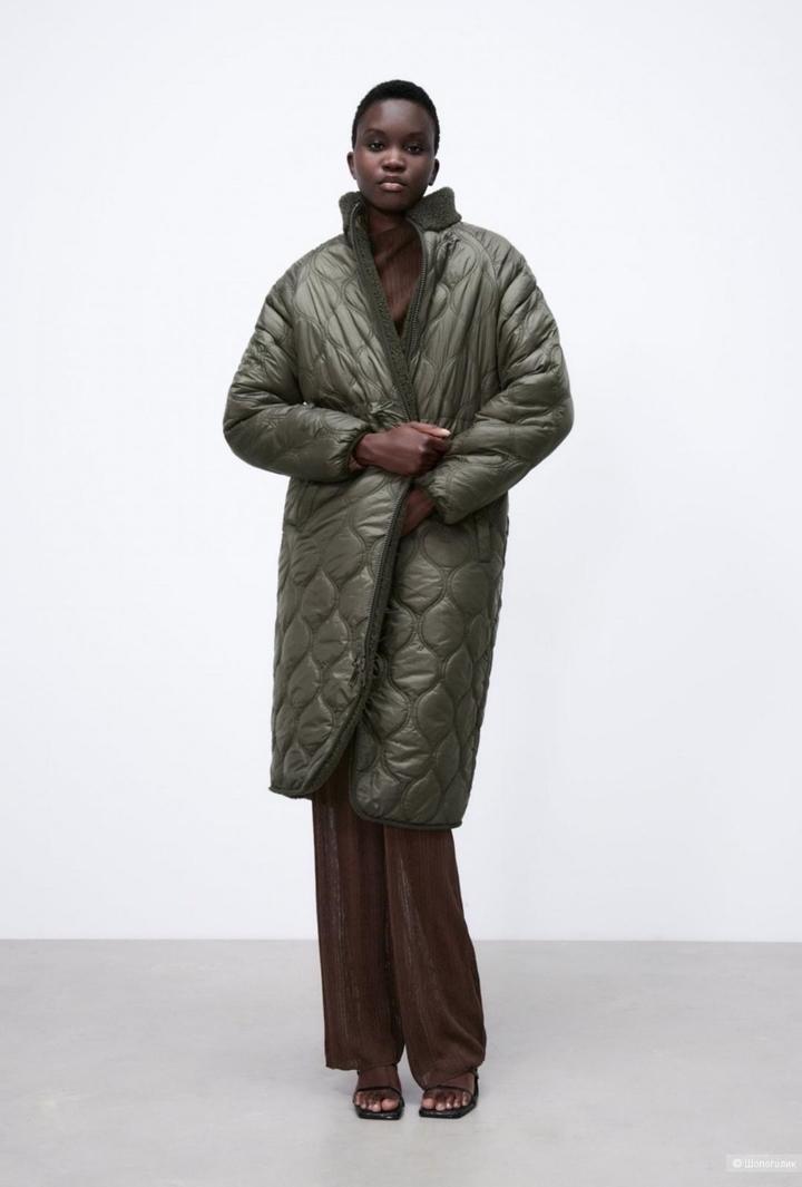 Двустороннее пальто Zara — универсальная и стильная модель на холодный сезон. С одной стороны — стёганая ткань цвета хаки, которая защищает от ветра и влаги, с другой - мягкая шубка Teddy, создающая уют и тепло. Объёмный силуэт и лаконичный дизайн позволяют легко сочетать пальто с любым образом - от спортивного до классического. Теплое, можно носить до -15°. - Оригинал Zara Размер: XS (подойдет на 40-44) Артикул: 359681