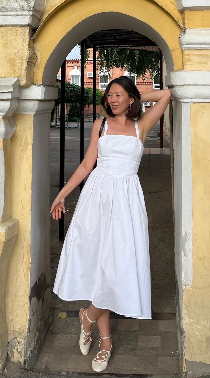Белое 100% хлопковое женственное платье. Верх платья плотный, двухслойный, можно носить без бра. Артикул: 359846