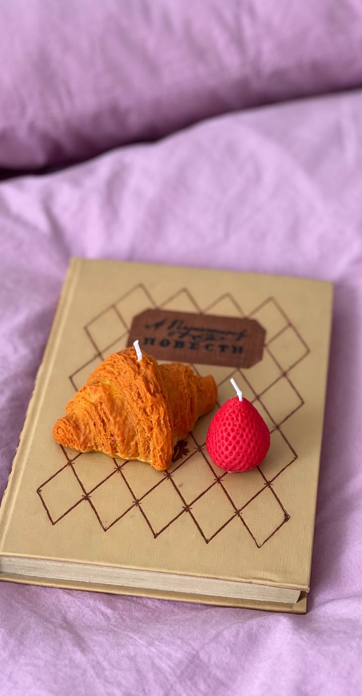 Идеальный подарок на НГ. Аромат миндального круассана и свежей клубники. Максимально реалистичные! Надежно Упакованы в коробку !! Количество ограничено. В комплекте две свечи: 1 круассан и 1 клубника. Из натурального соевого воска и премиальных Арома масел Артикул: 360347