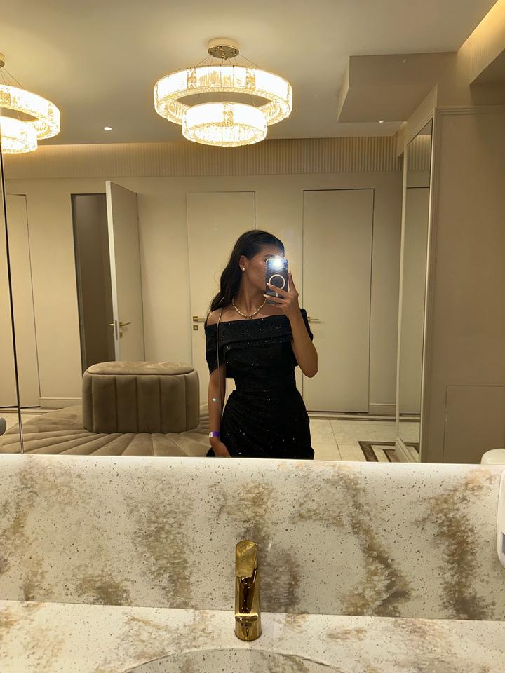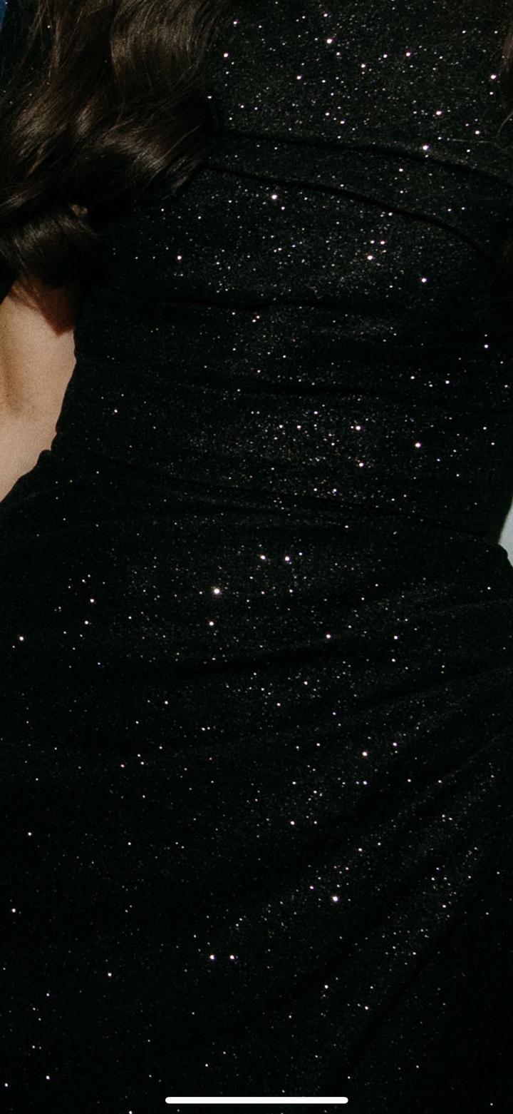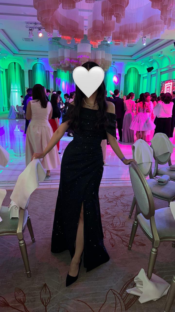 Платье приобреталось в салоне Елены Набокиной. Платье подойдёт девушкам размера XS или S, а именно, девушкам 42-44 размеров, идеальный вариант для выпускного вечера и любого другого мероприятия. Платье имеет корсет который можно затянуть сзади по своей талии. Само платье черное, блестящее, фасон «рыбка» отлично подчеркнет красоту фигуры любой девушки. Артикул: 360589