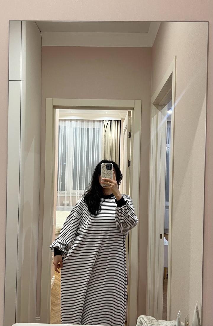 Свободное платье удобного кроя. Покупала специально для поездки в Мекку, надевала всего пару раз. Ткань плотная, качественная , отлично подходит для прохладной погоды. При моём росте 168 см вы можете увидеть, как оно сидит, на фото. Артикул: 361704