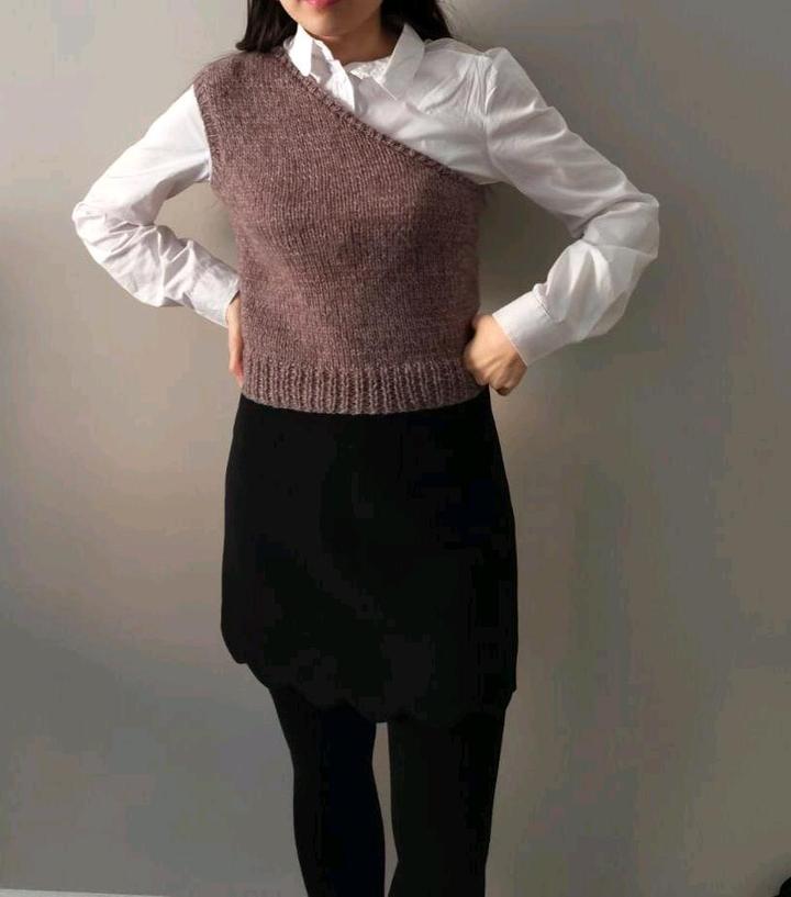 Жилетка вязаная на одно плечо, ручная работаS/M
