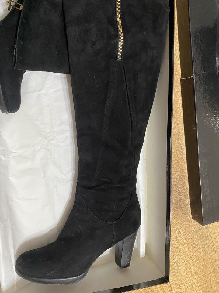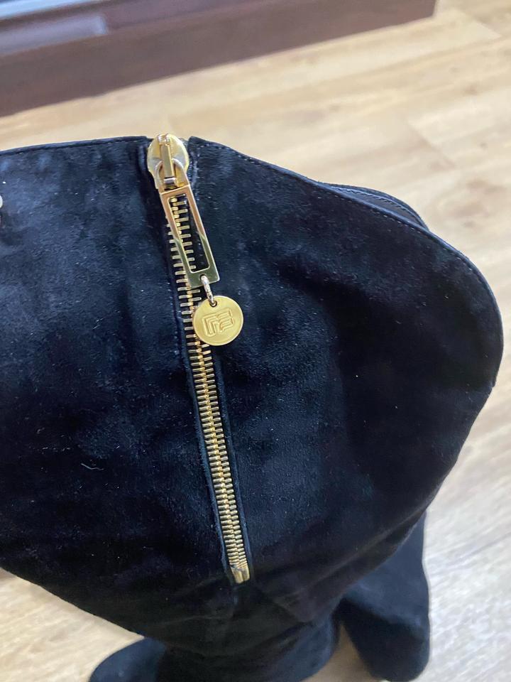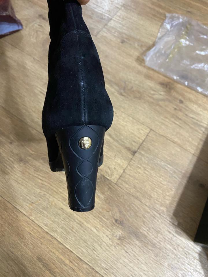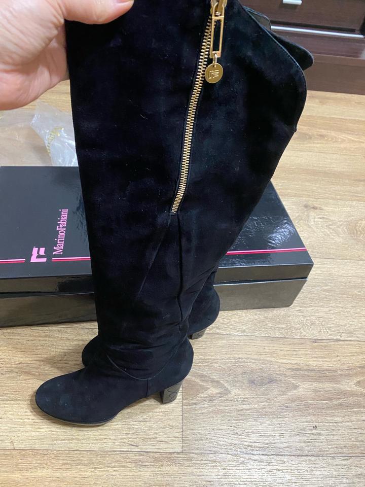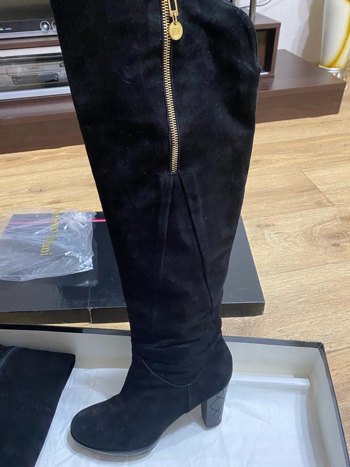 Сапоги черного цвета. Производство Италия. Размер 38, маломерят. Очень хорошая замша. Одевались пару раз. Артикул: 362595