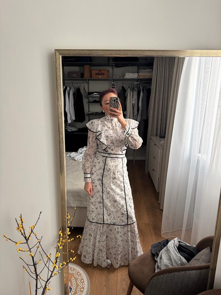 Продам красивое и нежное платье «Салтанат» By Aida Nurekenova. Покупала в ноябре 2025 года, платье выходило 1 раз на свадьбу. Соотвественно, состояние нового. Размер М, длина платья на фото (мой рост 165 см). Артикул: 362917