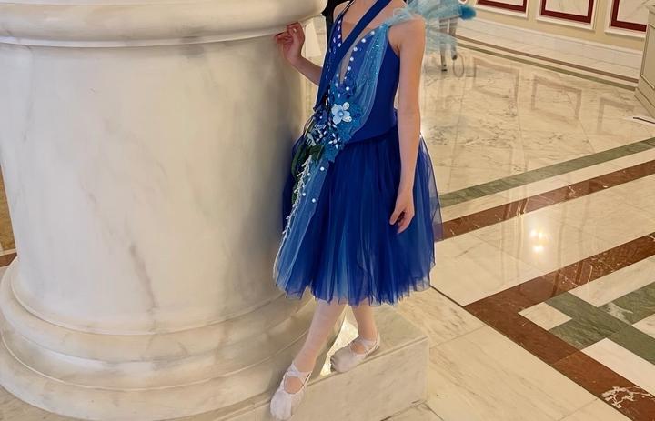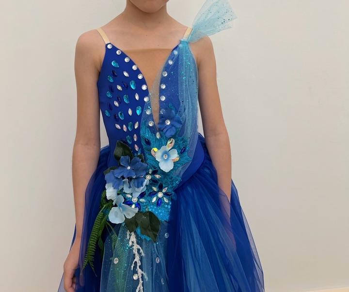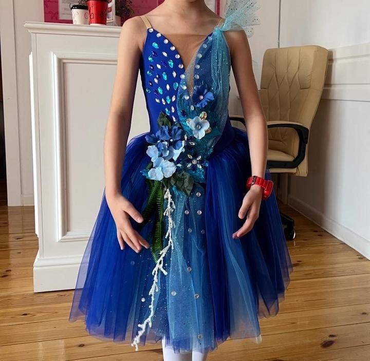 Синее нарядное бальное платье128