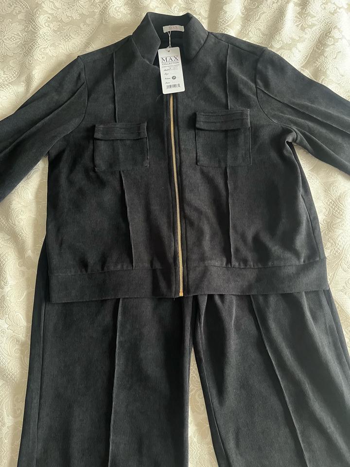 Женская черная двойка спорт-шик, размер 48, мягкий микро-вельвет, брюки на резинке с хорошей посадкой Артикул: 363965