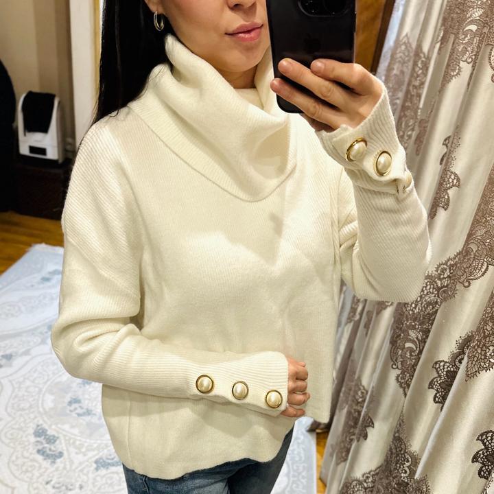 В хорошем состоянии. Был в носке пару раз.Бело-молочный цвет . Покупала в итальянском бутике в меге. Смотрится стильно и актуально. Размер свободный. На s-m будет хорошо. Артикул: 364089