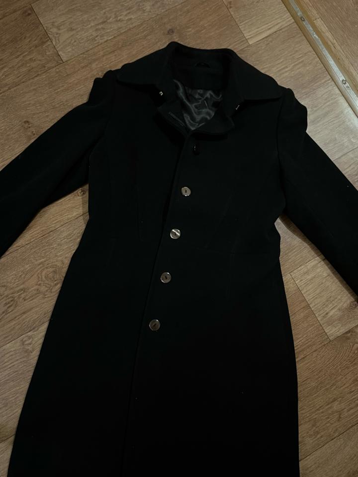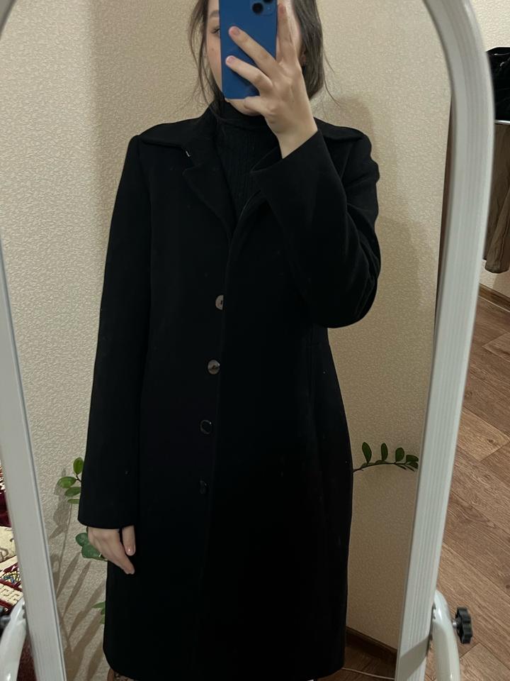 Черное пальто, бренд KENT Размер S-M Состав: 64% шерсть, 31% вискоза, 5% лайкра В идеальном состоянии Артикул: 364329