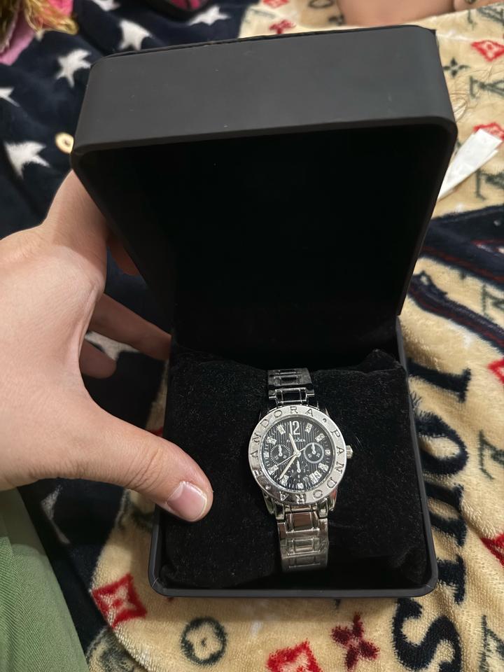 женские наручные часы с металлическим браслетом и циферблатом, украшенным стразами, с надписью "Pandora" на безеле. Самая низкая цена! Коробка в подарок! Артикул: 364486