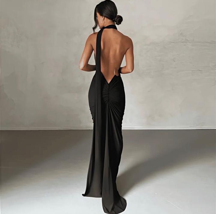 Черное платье с открытой спиной и что то вроде шарфика. Артикул: 364719