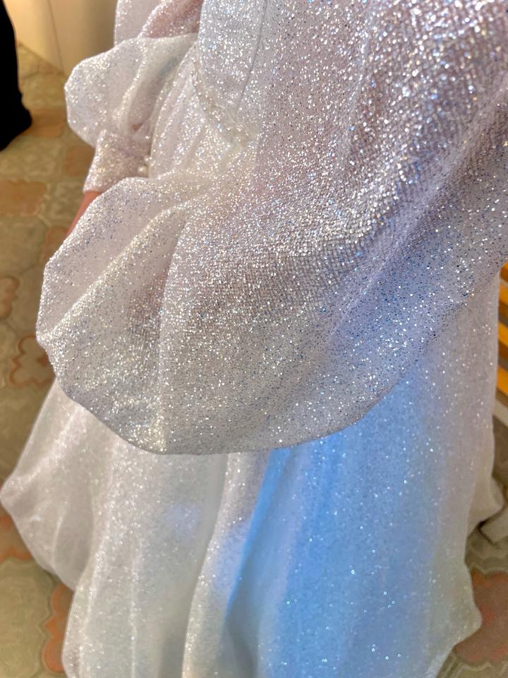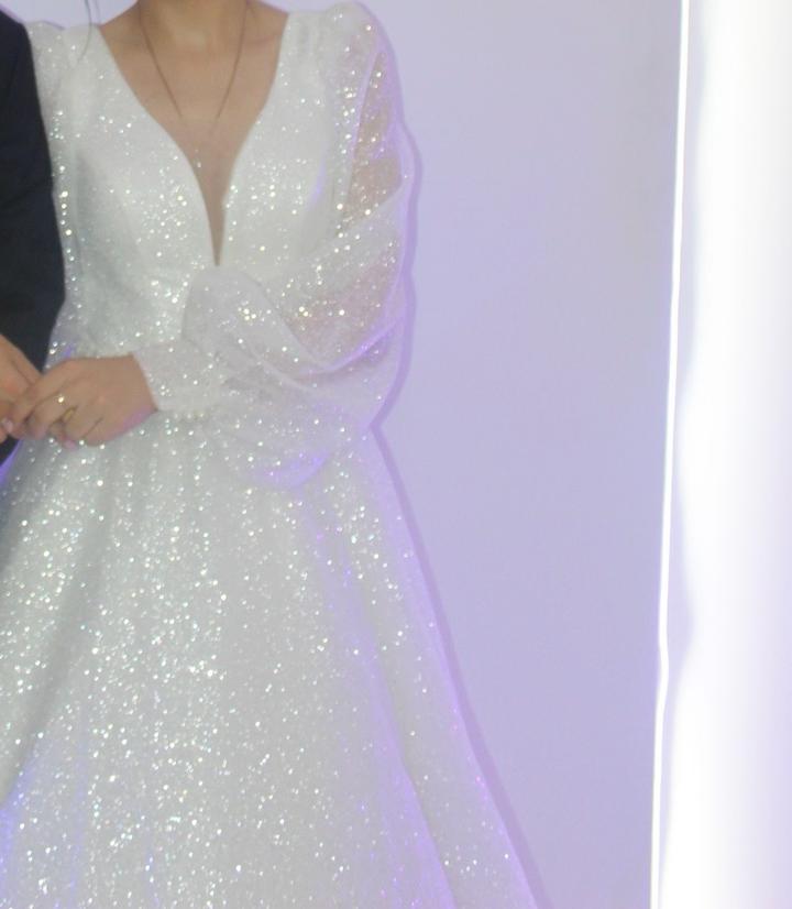 Продается свадебное платье,46 размер, мой рост 164, надевала с каблуками 3-4 см, платье блестящее с кольцом если заинтересует, сразу позвоните, пожалуйста Артикул: 365047
