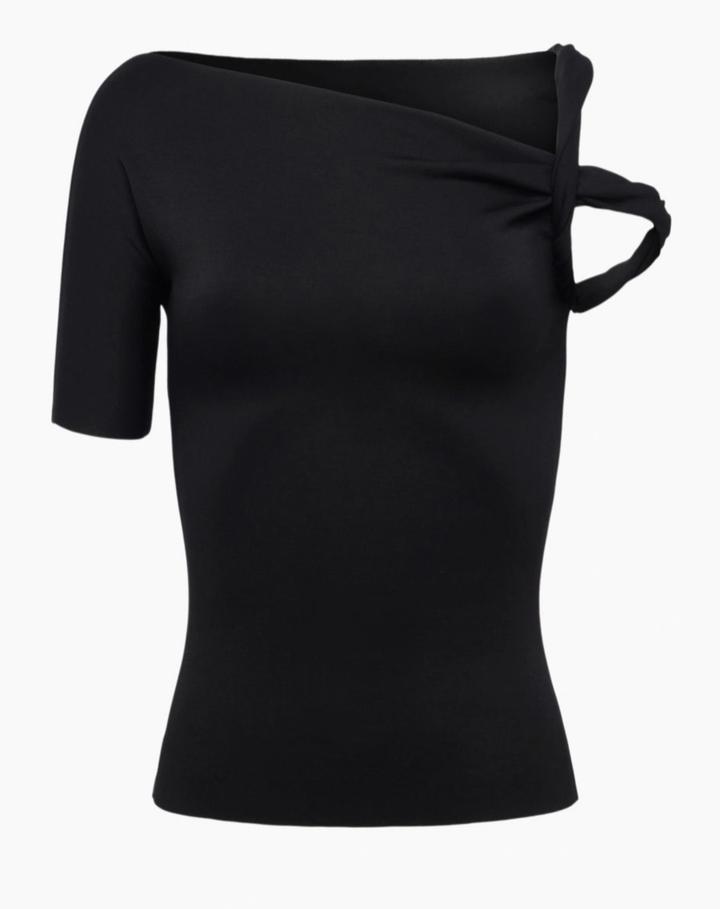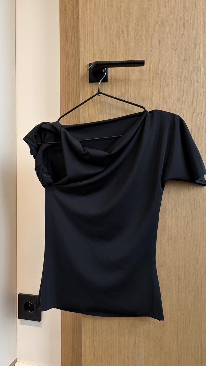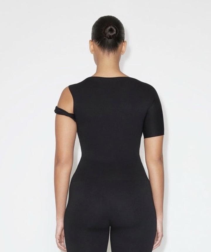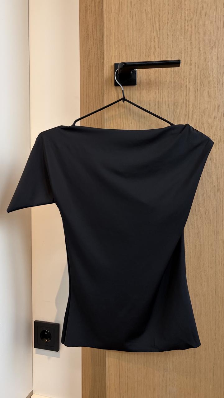 Плотно прилегает, из спандекса, эффект утягивания. Перекрученная деталь на рукаве. Не подошел размер. Бренд Kylie Jenner Артикул: 365085