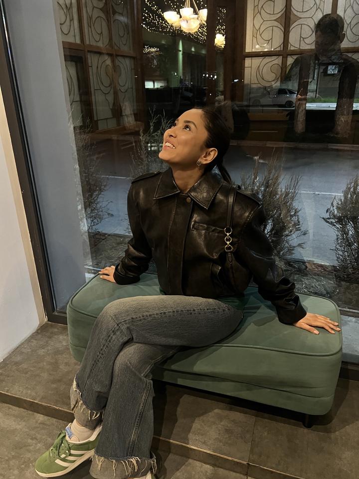 Качественная Экокожа, обьемные плечи, понизу резинка , можно собрать и приталить, очень стильная, осень - весна носилась. Состояние новой. Артикул: 365811
