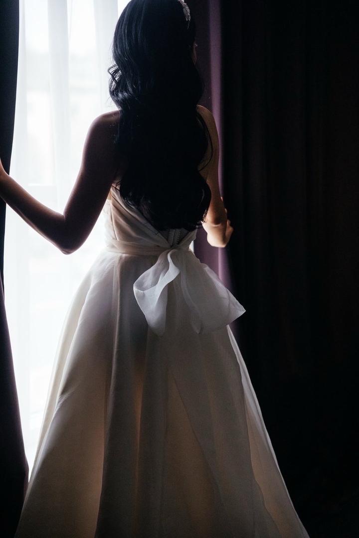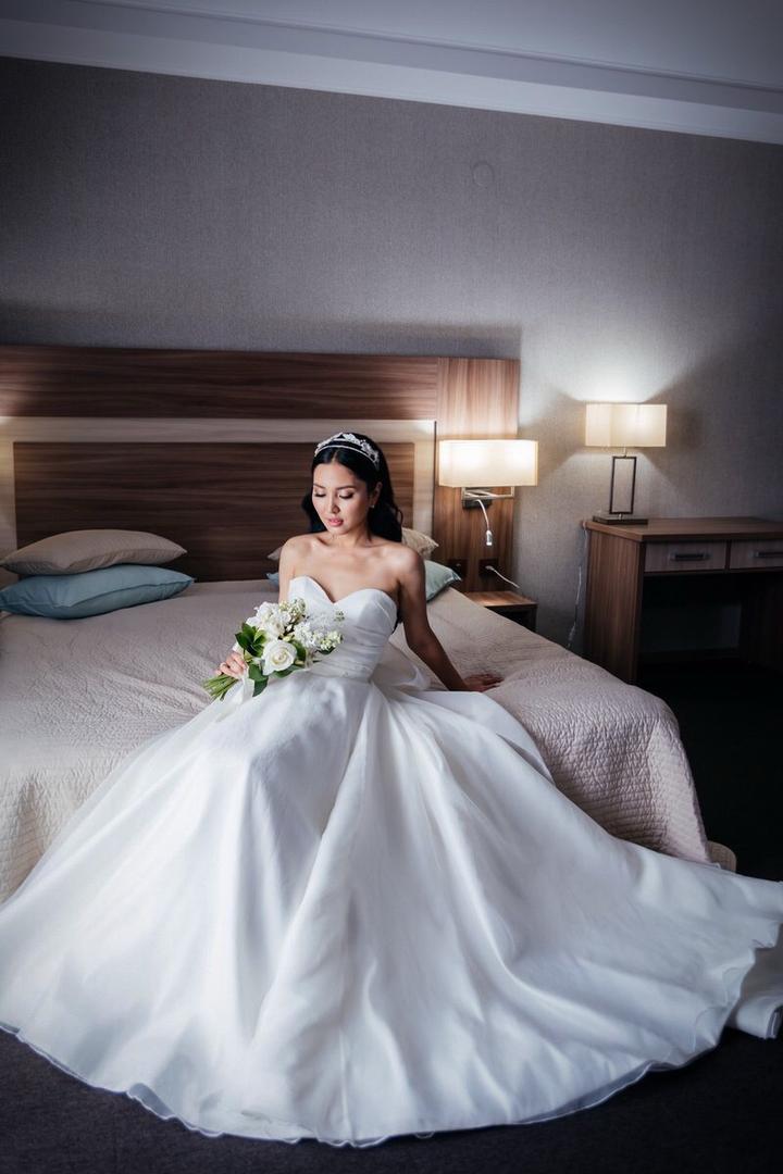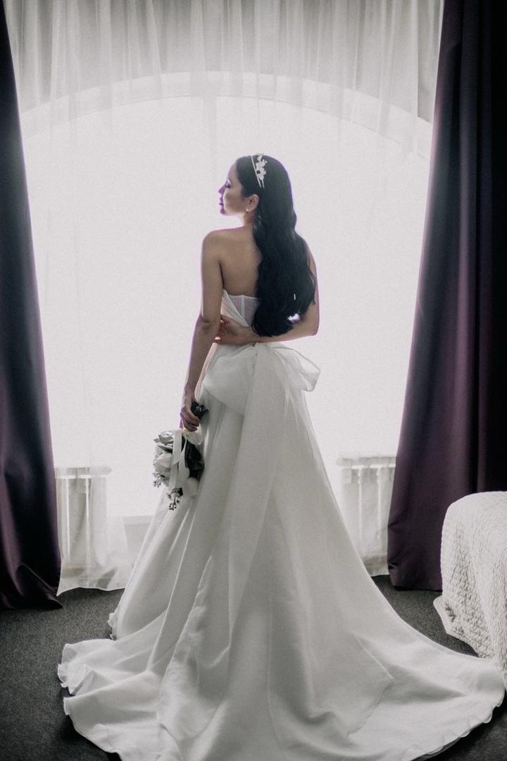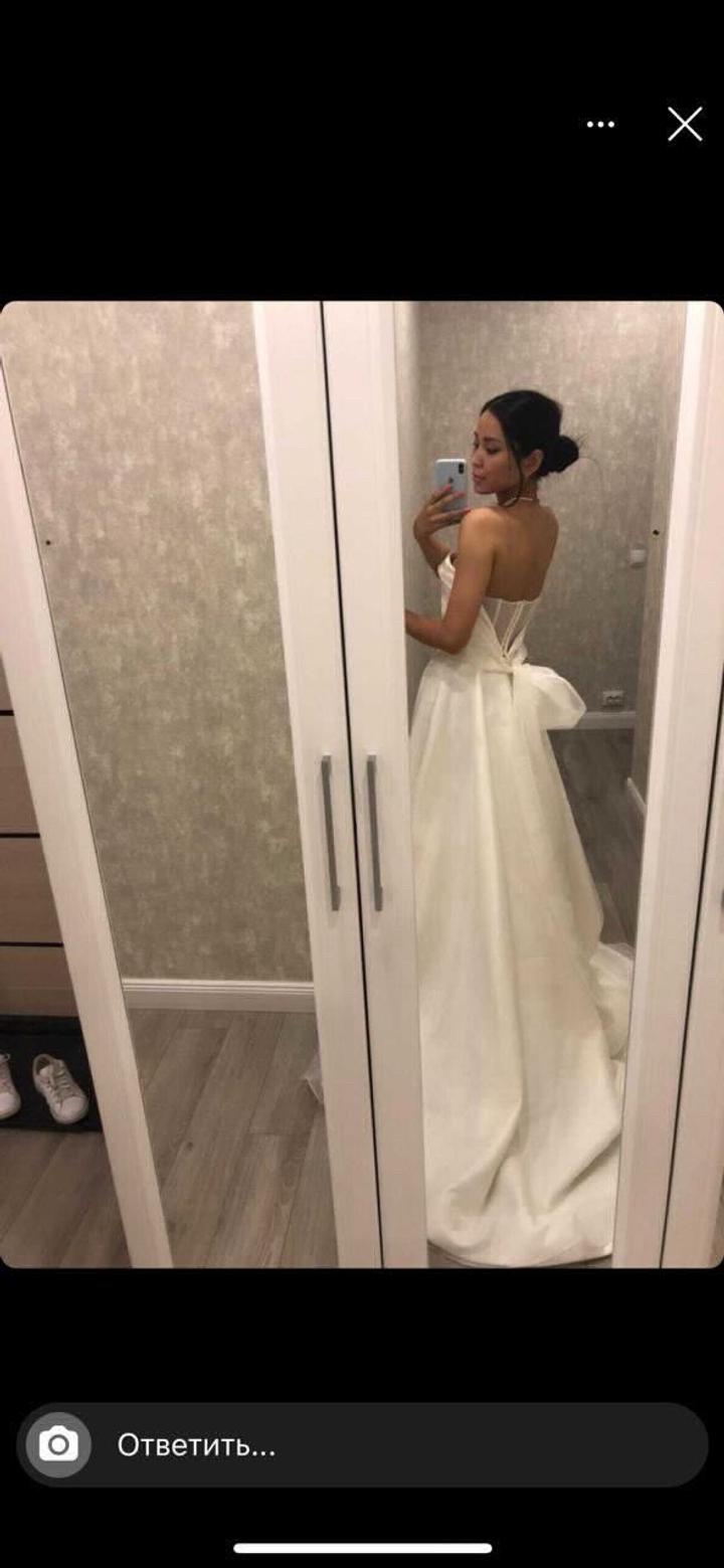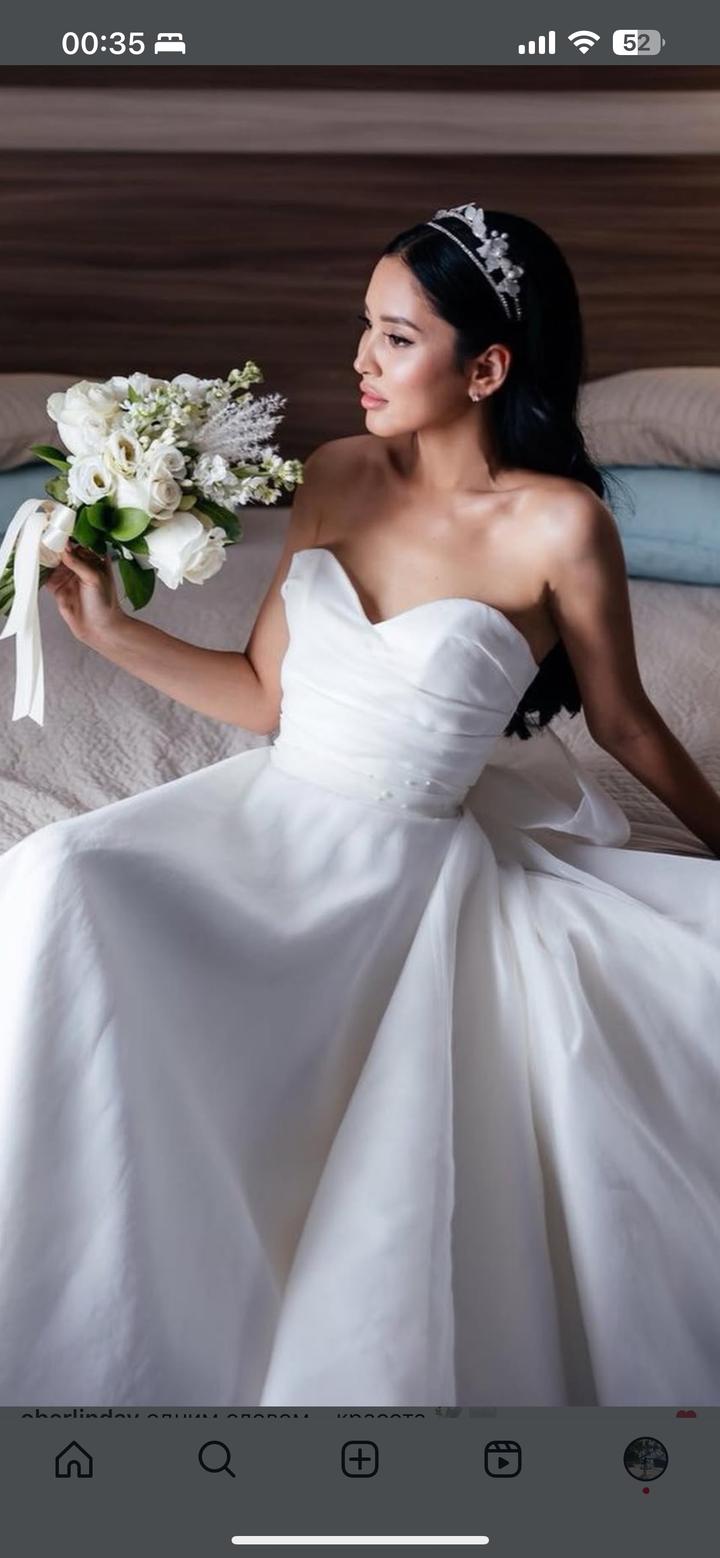 Платье из бутика « White swan» актуальный фасон на все века. Я одевала один обруч книзу и оно не было через чур пышным ) можно сделать пышным. есть шлейф. Платье очень нежное и красивое. Очень удобное и относительно легкое. Пояс обшит жемчугом , сзади красивый корсет. Большой бант изюминка. Оно после химчистки ! Артикул: 365845