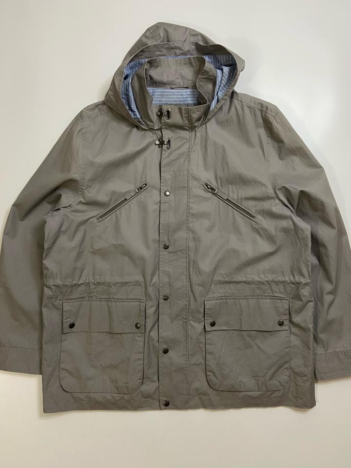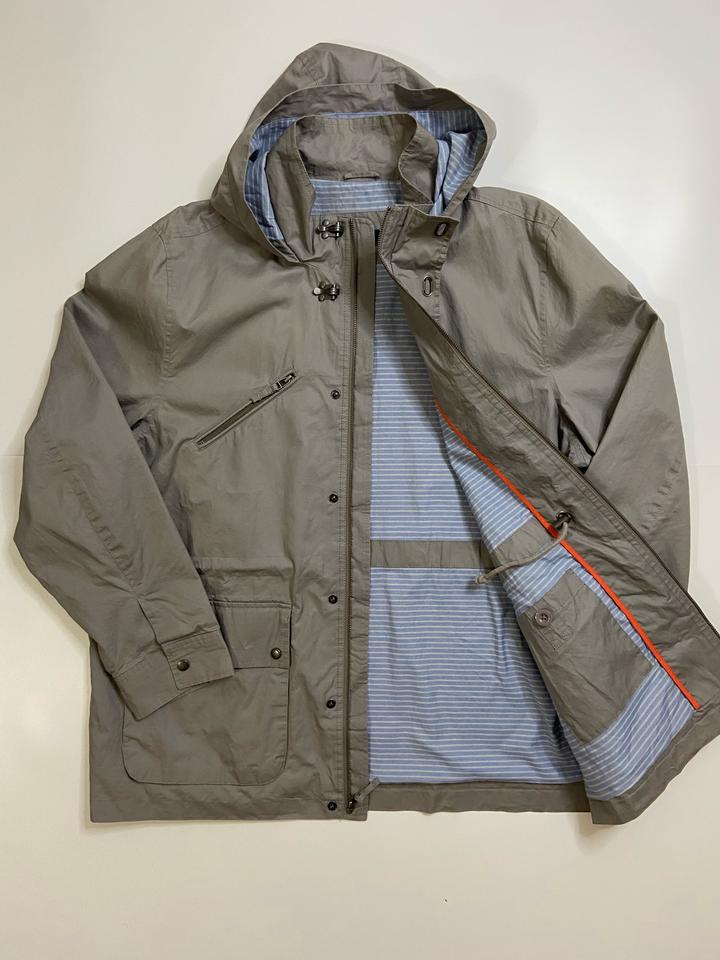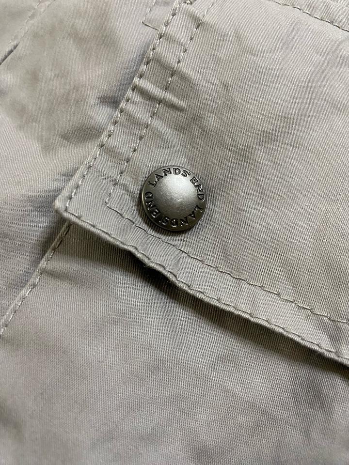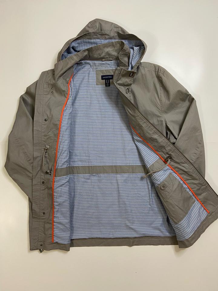 Лёгкая куртка от бренда Land’s End цвет серый, в отличном состоянии, имеет необычные заклепки в вороте и с капюшоном, подклад в очень приятном цвете. размер подходит на XL и на 2XL Артикул: 366270