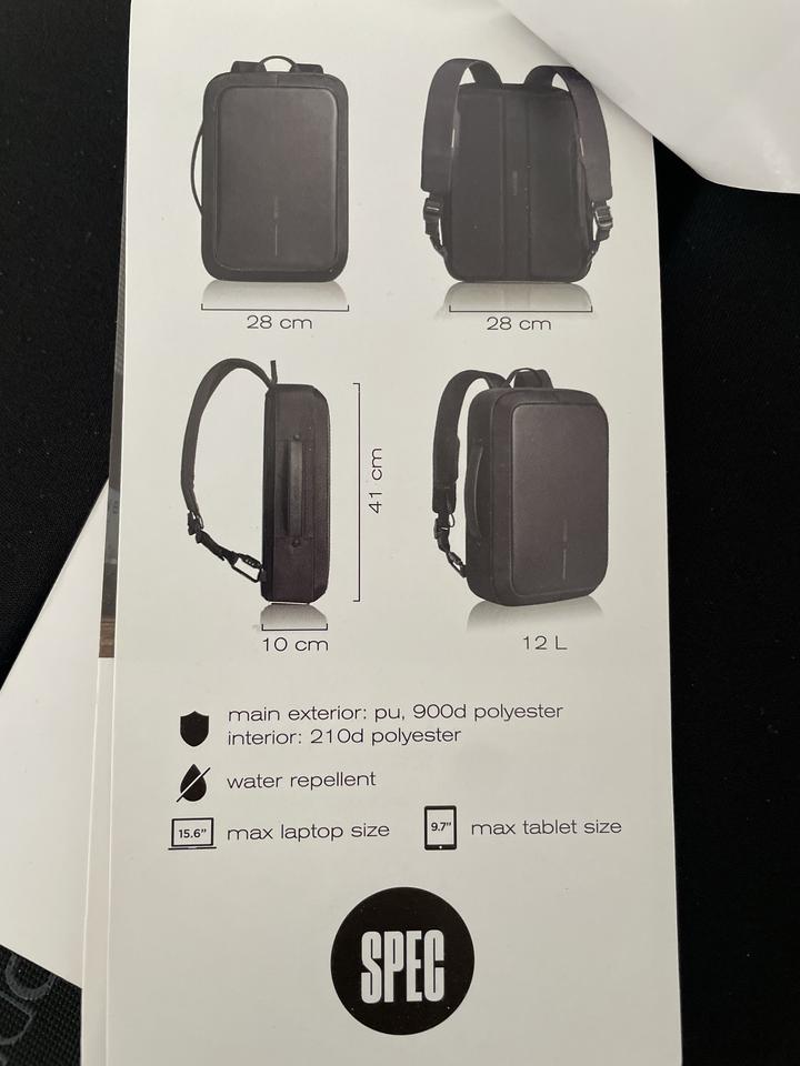 Черный рюкзак прямоугольной формы, трансформер. Можно использовать как рюкзак или портфель. Объем рюкзака: 12 литров Полная защита от карманников: не открыть, не порезать. В комплекте кодовой замок, usb порт. Металлический трос/ Толщина троса: 2 мм Светоотражающая полоса, влаги отталкивающее покрытие. Отделение для ноутбука диагональ до 15,6. Артикул: 366336