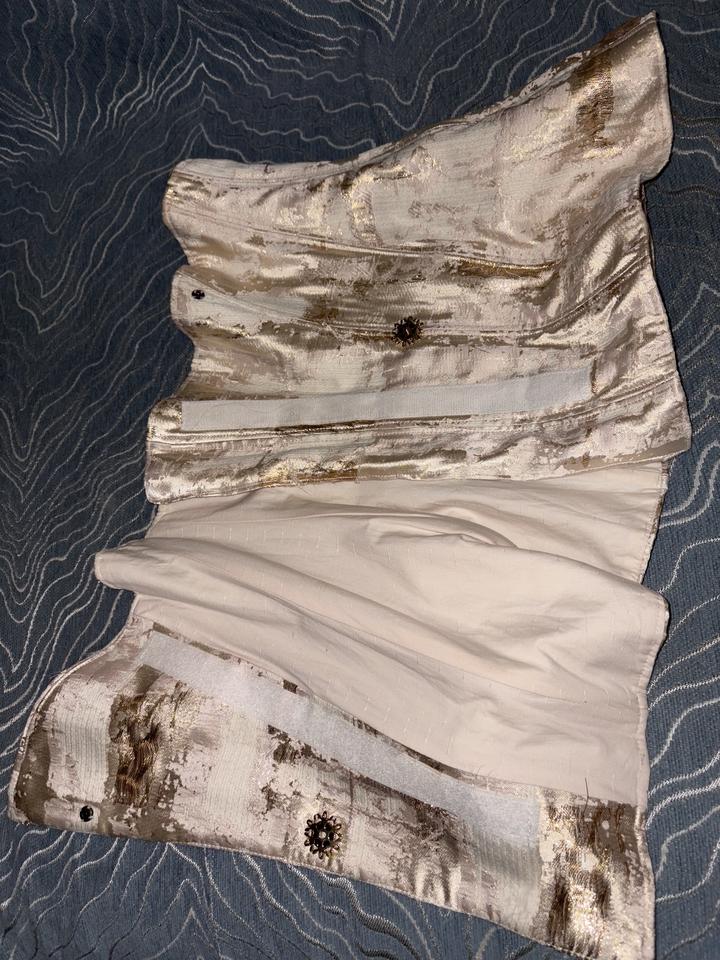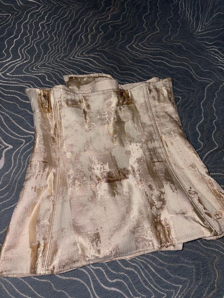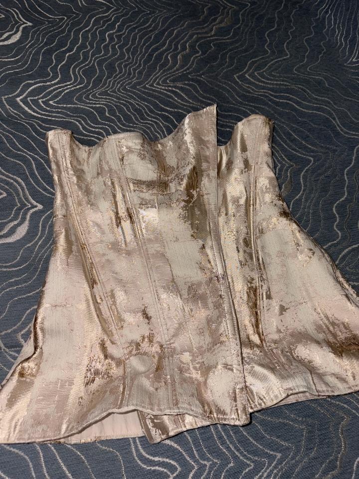 Красивый нарядный топ с золотистым люрексом , заклепки и липучки изнутри , косточки держат форму баски . Сшилось в ателье Артикул: 368538