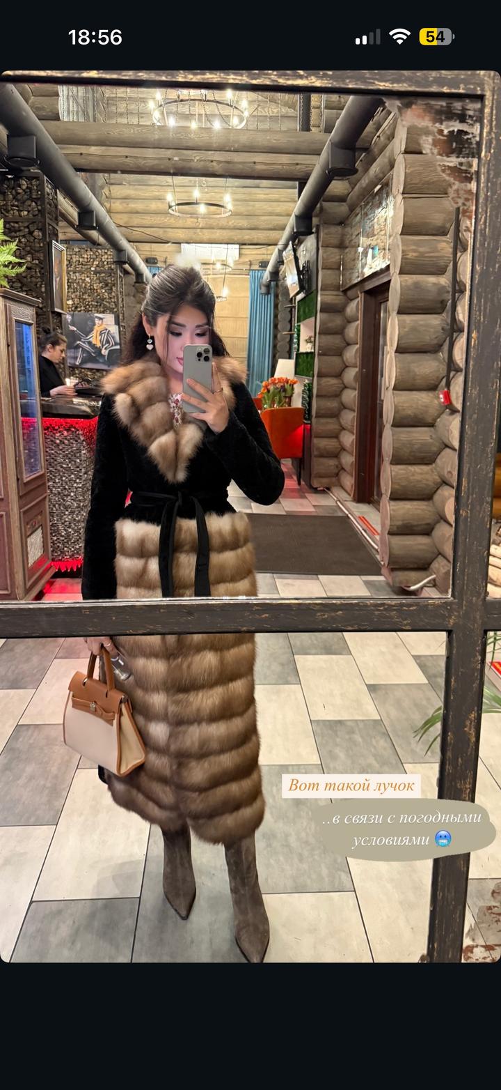 Покупала за 1.300.000 тг Носила только 1 сезон Мех куница, астраган Размер М-Л Артикул: 368590