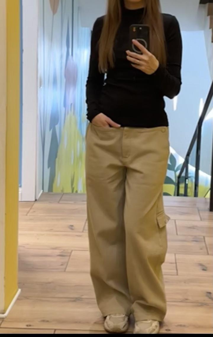 Джинсы , регулируются за счет резинки , можно носить на талии или на бедрах , с каблуком и кедами . Интересные карманы , можно отстегивать . Размер XS, S Артикул: 368680