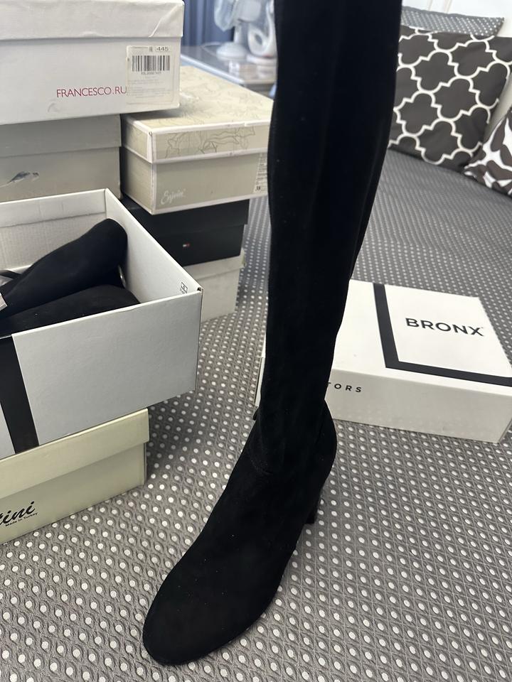 Очень сексапильные замшевые ботфорты не оставят вас и окружающих равнодушными! Смотрятся офигенно! Устойчивые, хоть танцуй на них!Каблучок красивый необычной формы. При этом ножку вытягивают и стройнят! Пишите, есть торг! Артикул: 368975