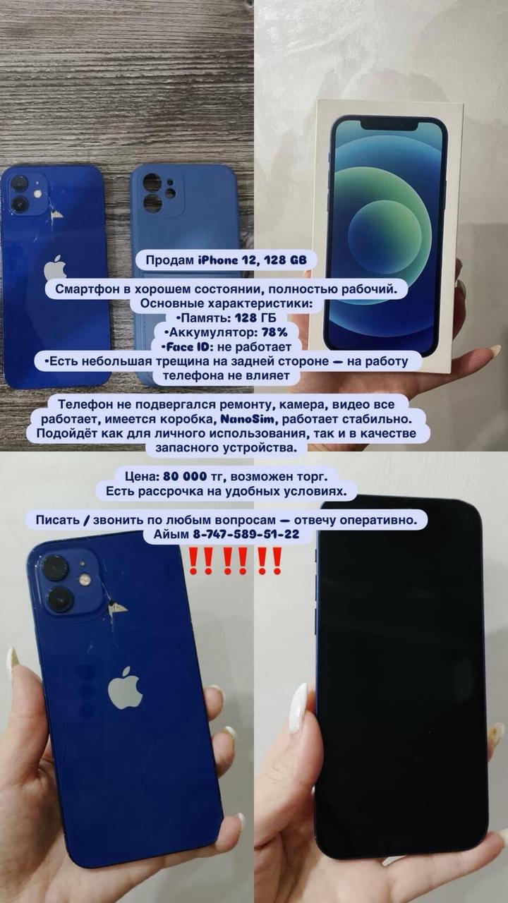 Продам айфон 12, 12+7### ### ## ##, есть каспи рассрочка. Артикул: 369807