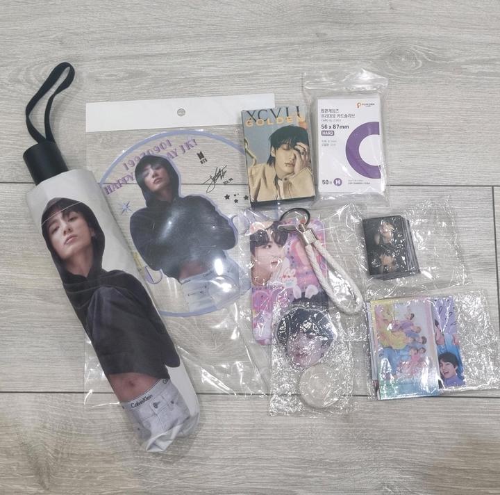 Набор для фанатов Чонгука: 1. Зонтик с Чонгуком 2. Веер с Чонгуком 3. Фотокарточки 54шт 4. Обложки для фотокарточек 5. Стикеры 61шт 6. Картхолдер (для проездных или др карточек) 7. Попсовет голова Чонгука В подарок идут стикеры с группой БТС. Артикул: 370157