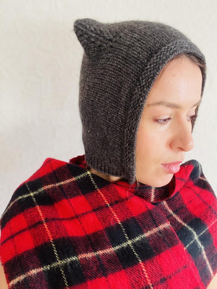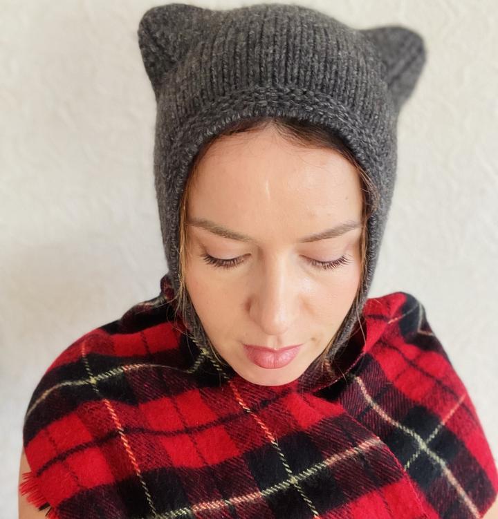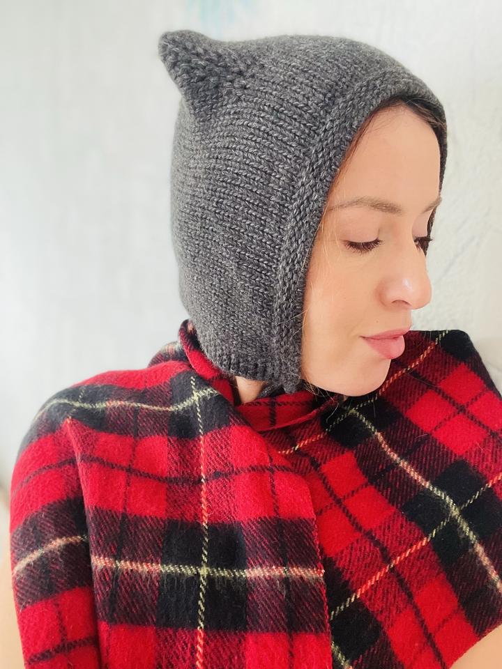 Вязаный женский чепчик с ушками-