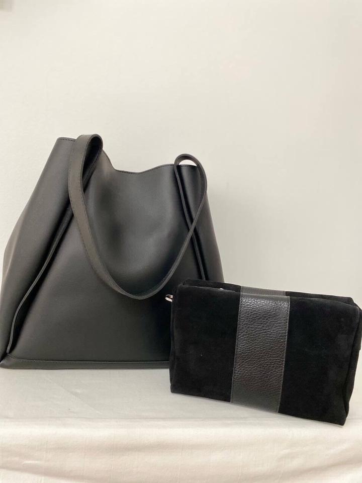 Продаю идеальную пару для современного городского стиля: ультрамодная сумка-тоут в стиле минимализм и стильный замшевый клатч. ✨ Особенности Комплекта: 1. Сумка-Тоут (Шоппер): • Дизайн: Классическая форма «ведро» с мягкими, плавными линиями, которая никогда не выйдет из моды. Сумка не имеет лишней фурнитуры, что делает ее невероятно стильной и универсальной. 2. Замшевый Клатч/Косметичка: • Материал: Нежная замша в сочетании с кожаной вставкой — стильный и тактильно приятный аксессуар. Артикул: 370739