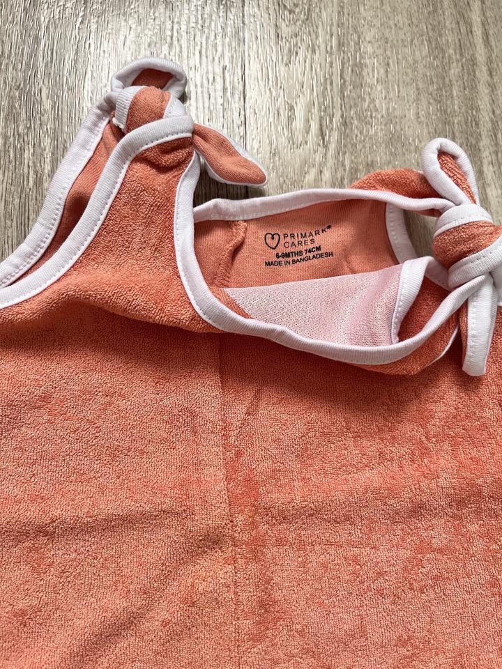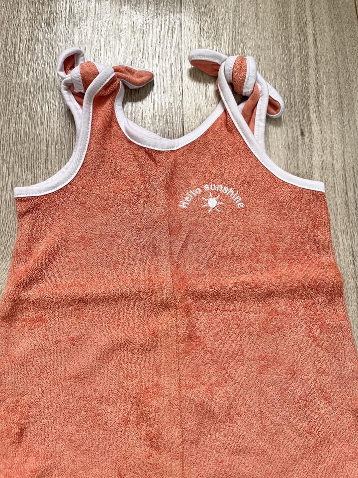 Песочник на девочку в красивой оранжевой расцветке Сверху лямочки на завязках Артикул: 370976