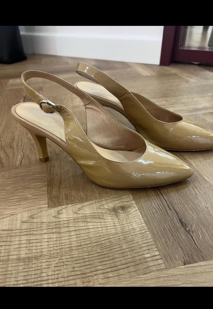 Босоножки бежевого цвета лакированные 36,5-37 размера в хорошем состоянии - носились пару раз Артикул: 372001