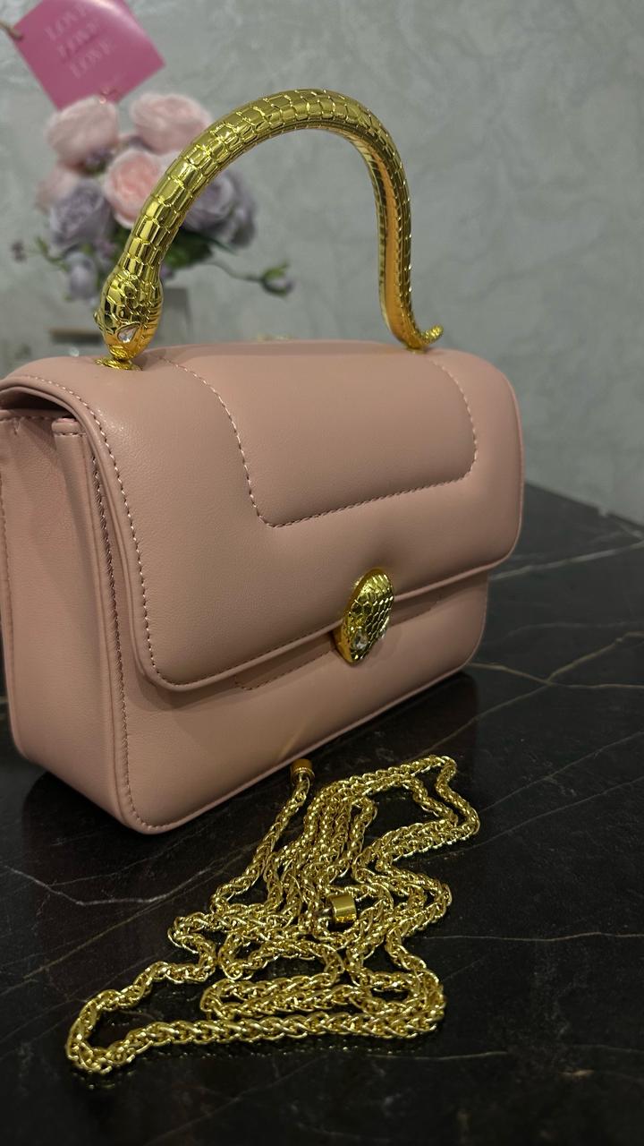 Элегантная сумка Bvlgari в нежно-розовом оттенке. Стильная, лёгкая подчёркивает образ и добавляет роскоши в любую деталь. Кожа мягкая, фурнитура блестящая. Универсальный размер удобно носить и днём, и на вечерний выход. Артикул: 372345