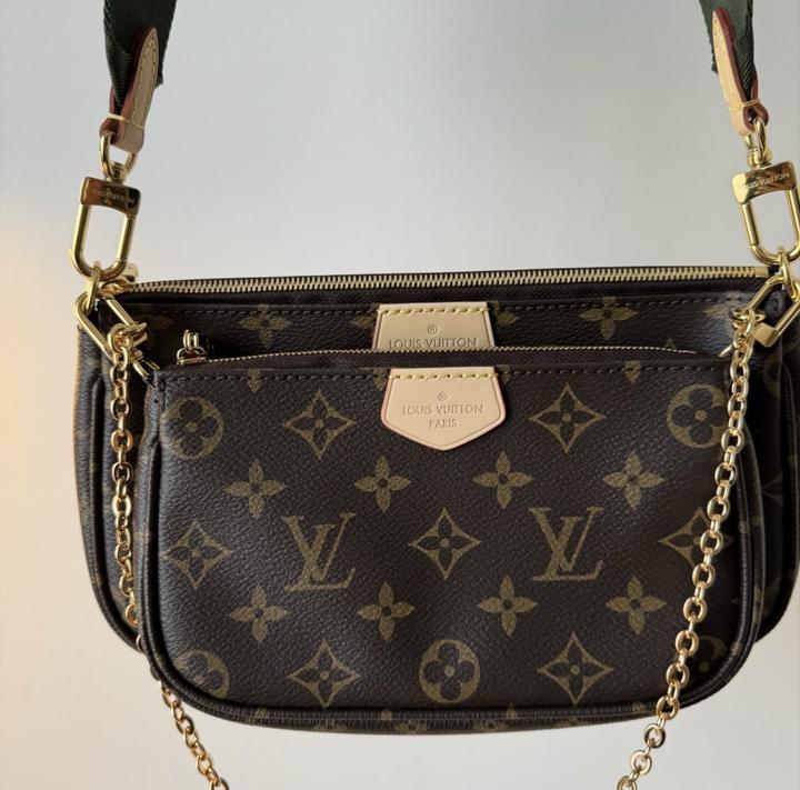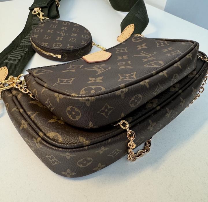 Сумка Louis Vuitton Multi Pochette Accessoires это гибридный аксессуар, состоящий из двух клатчей разного размера (Pochette Accessoires и Mini Pochette Accessoires) и маленькой круглой монетницы, выполненный из канвы Monogram, который можно носить разными способами благодаря съемным ремешкам и цепочке, что обеспечивает функциональность и стиль. Элит копия 1:1. Натуральная телячья кожа. Артикул: 372893