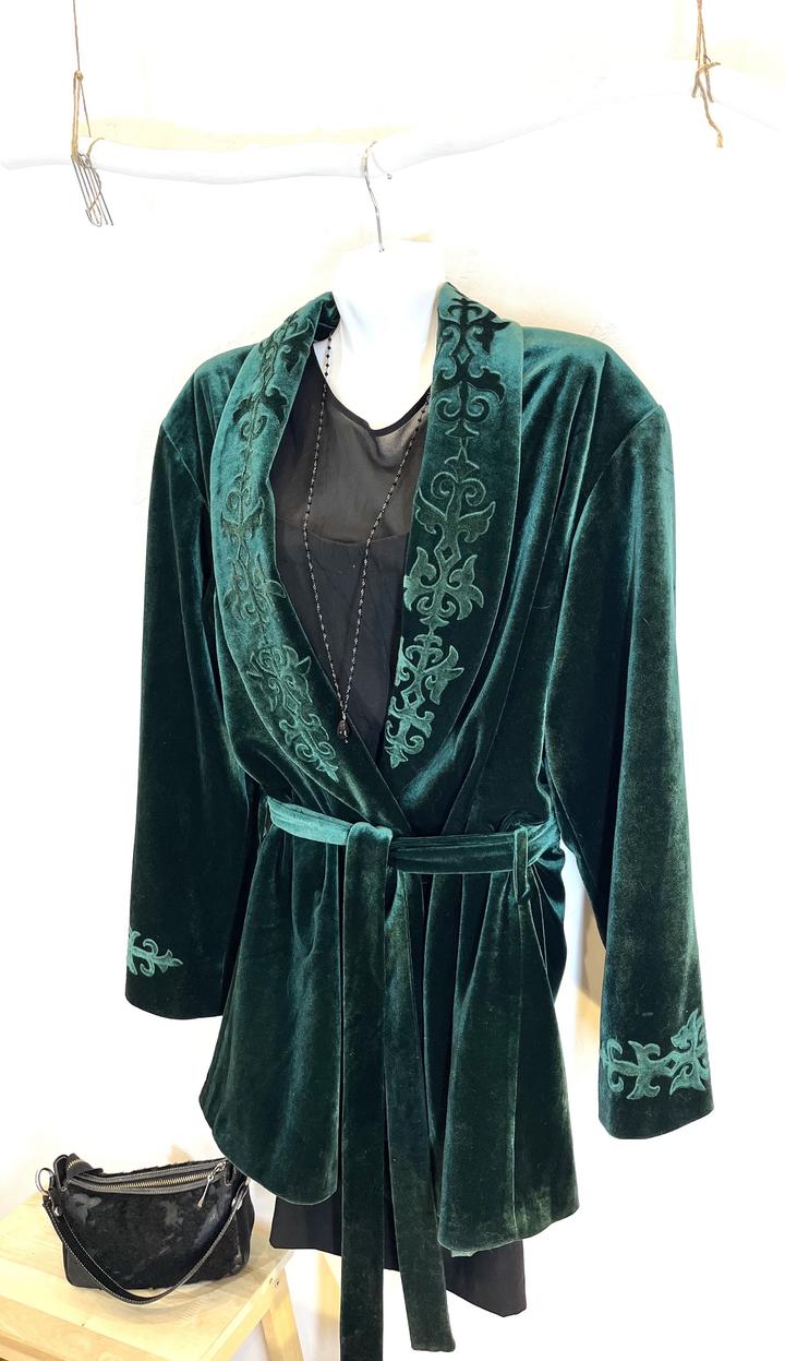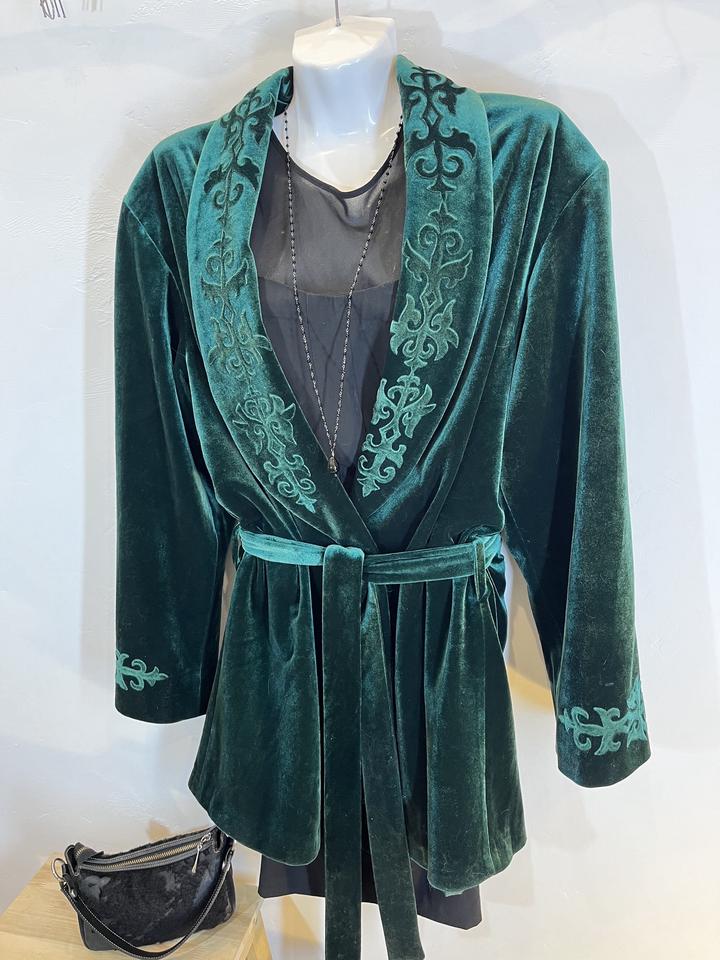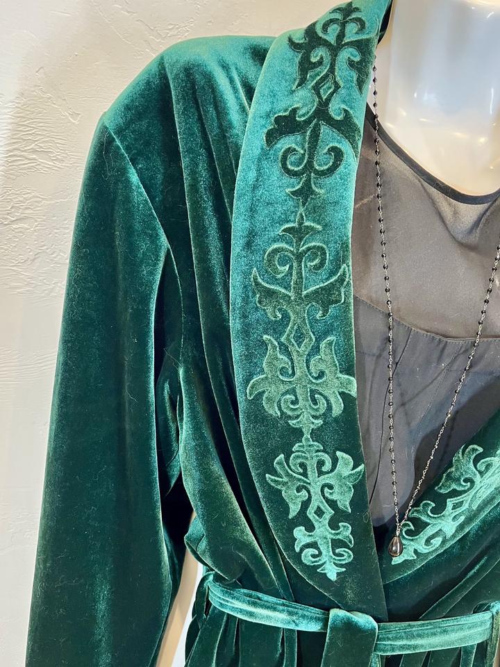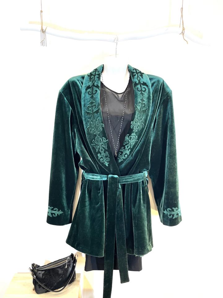 Чапан бархатный,изумрудно-зелёного цвета, с подкладом. Новый, не носили. Размер 50-52. Длина по спинке-92см.На фото манекен 46-го размера. Артикул: 372967