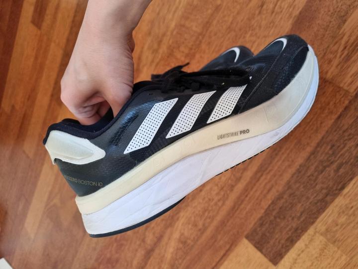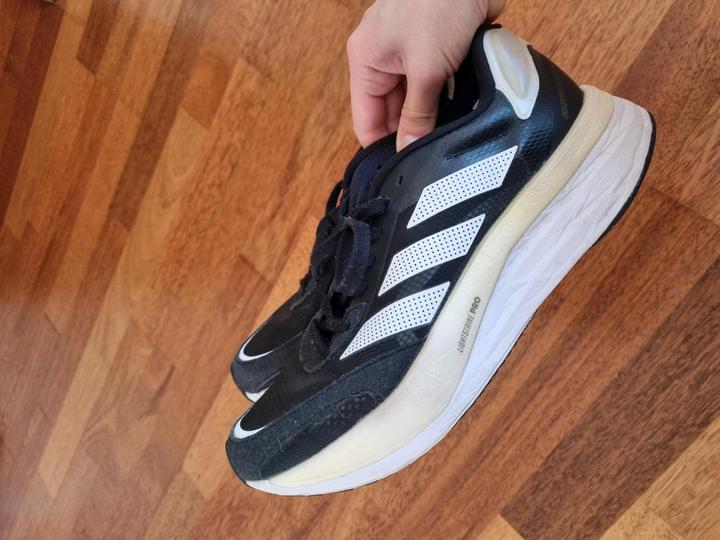 Кроссовки для бега Adidas Adizero Boston 10. В отличном состоянии, редко носились и только в закрытом зале. Очень удобные и лёгкие, хорошо фиксируют ногу, подойдут для профессиональных и начинающих бегунов. Размер 38, но кроссовки маломерят, рекомендую девушкам с р-рами 36.5-37.5 В жизни выглядят лучше чем на фото (у моего тел плохая камера) Артикул: 373314