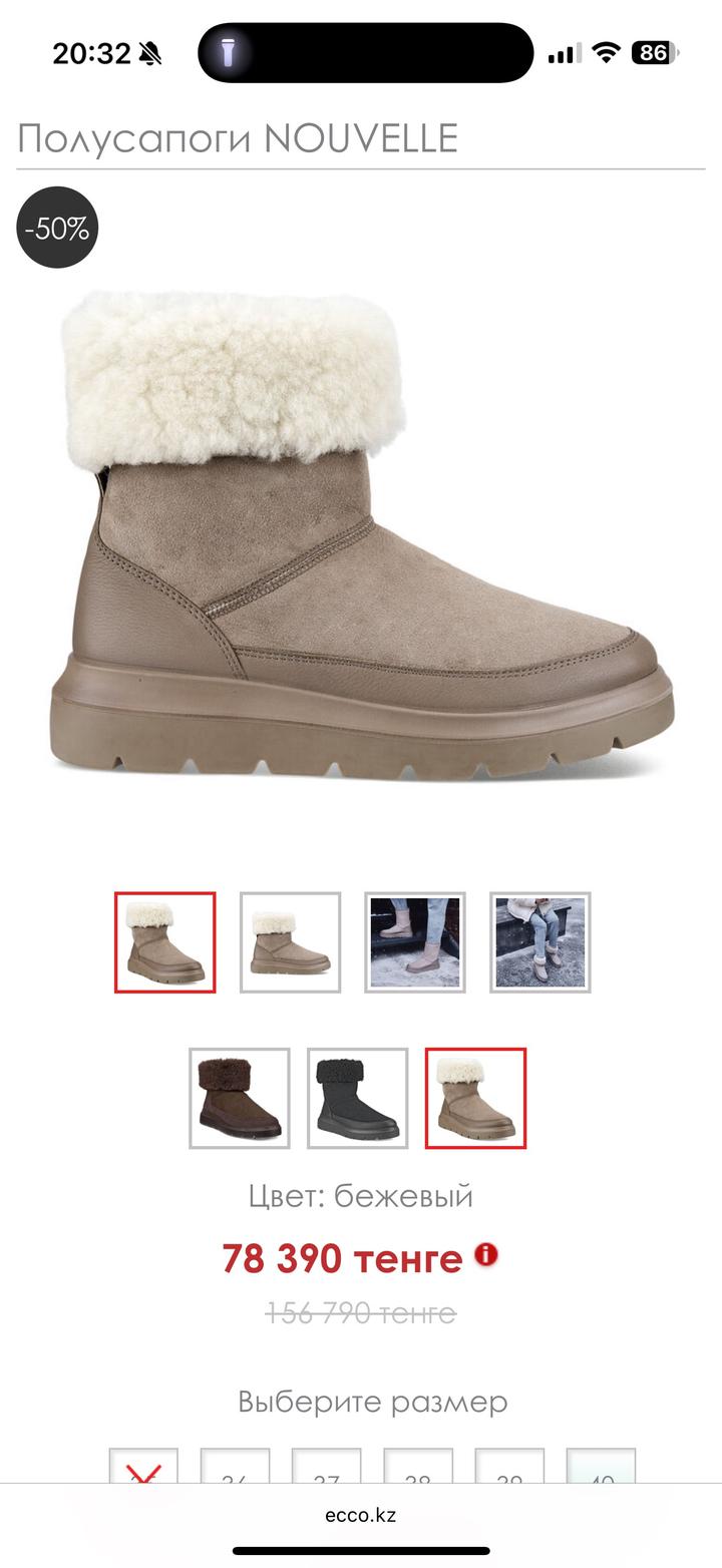 Женские зимние полусапоги из натуральной замши, внутри натуральный мех (овчина ). Новые- в коробке. Больше инфо можно почитать на сайте Ecco.kz. Торг уместен но в пределах разумного( так как сапоги абсолютно новые). Артикул: 373722