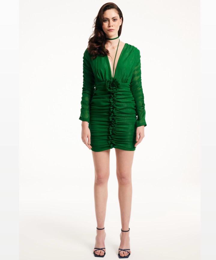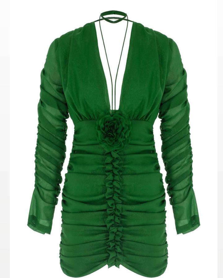 Драпированное платье изумрудного цвета с интересным дизайном. С глубоким вырезом спереди и сзади. Цветок съемный. Материал - шифон. Размер М. Новое с бирками! Распродаю остатки, был магазин) Производство - Турция, изделие от турецкого дизайнера. Платье было замечено даже на одной из героинь в турецком сериале Запретный плод)) Артикул: 373911