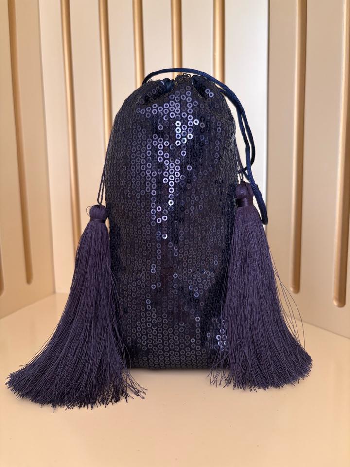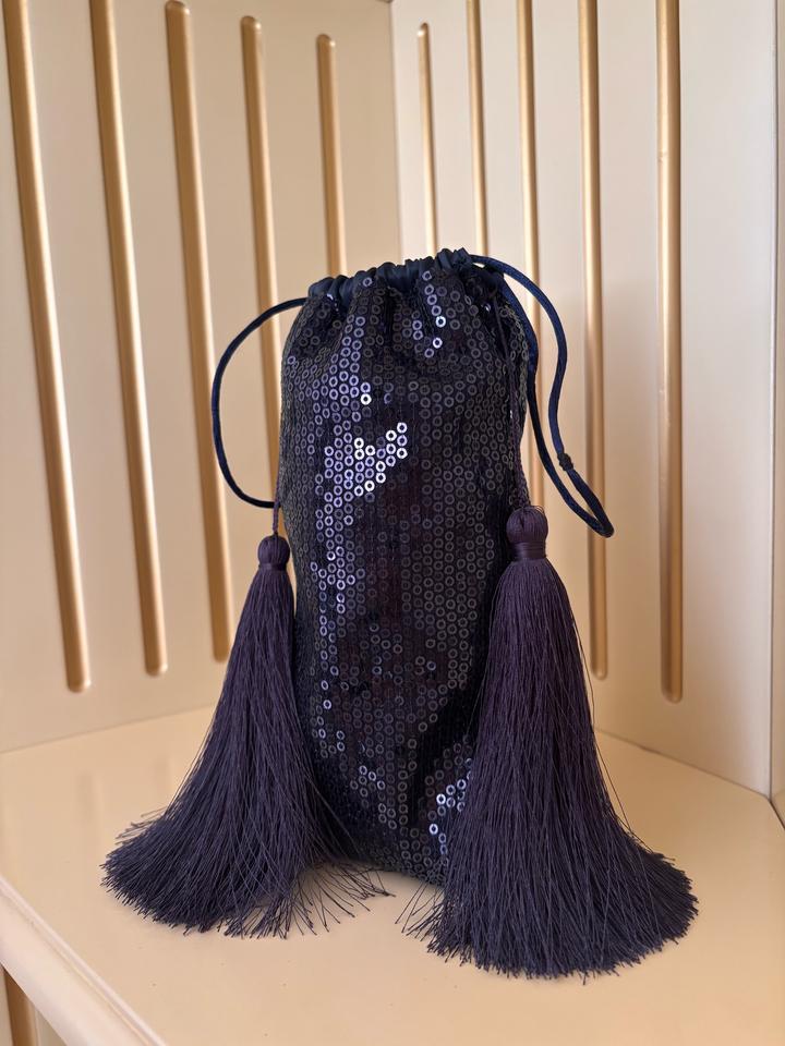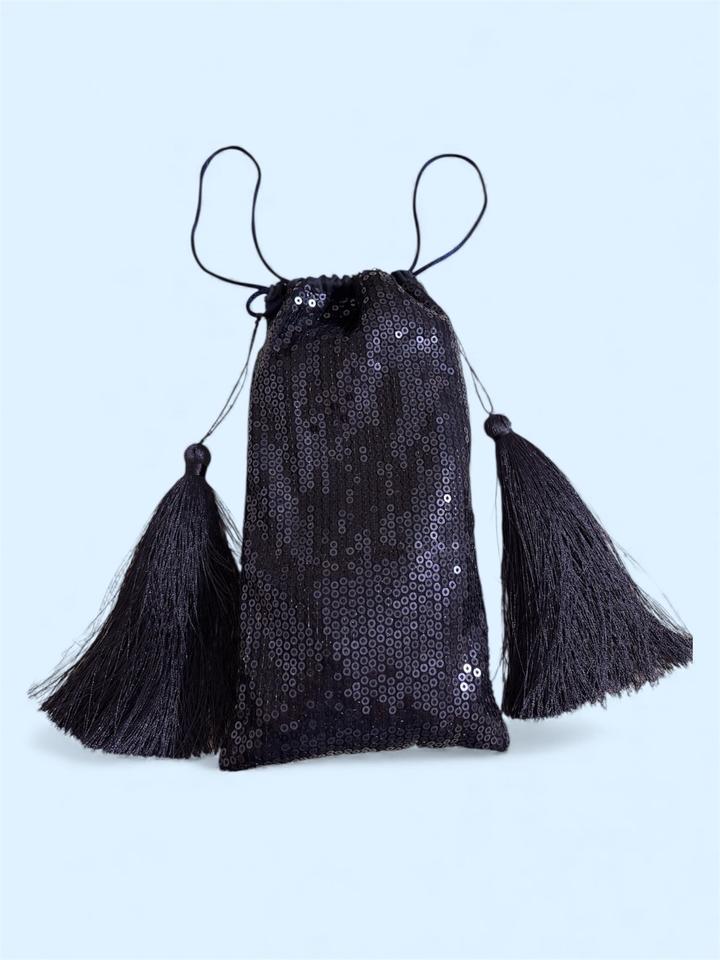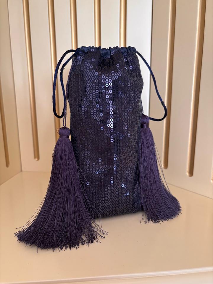 Мешочек-клатч с пайетками и крупными кисточками-
